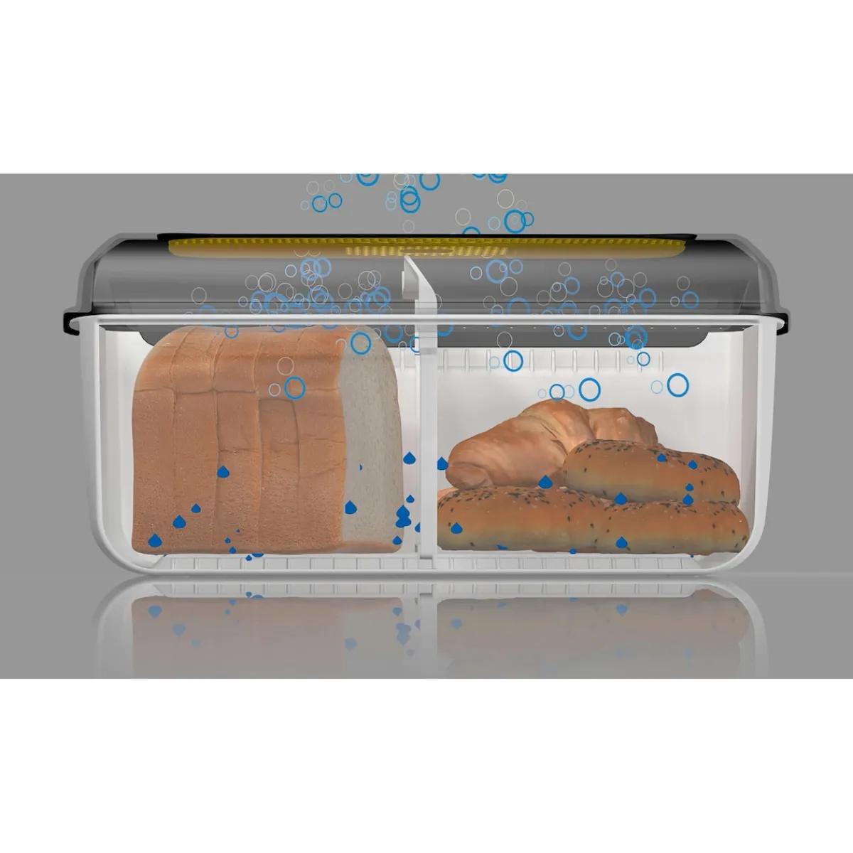Verabschieden Sie sich von Lebensmittelabfällen mit dem Brotkasten BreadSmart! Durch die innovative „CondensControl“ Technologie reguliert dieser intelligente Aufbewahrungsbehälter die Belüftung und Luftfeuchtigkeit im Inneren, wodurch Ihre Backwaren länger frisch bleiben. Der BreadSmart ist nicht nur perfekt für zwei verschiedene Brotarten dank des praktischen Box-Trenners, sondern eignet sich auch hervorragend zur Aufbewahrung von Muffins und anderen Backwaren. Sparen Sie Geld und Ressourcen, indem Sie Ihre Lebensmittel länger genießen können. Der BreadSmart – Ihre Lösung für frisches Brot und weniger Verschwendung!