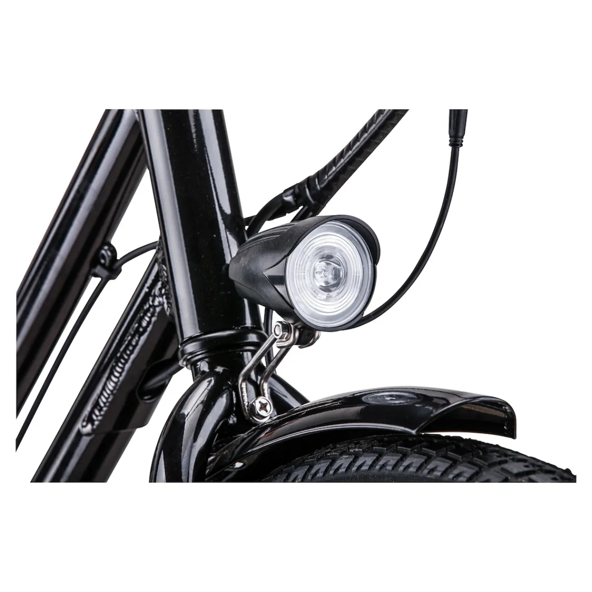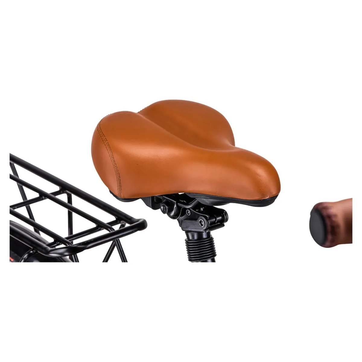 Schlicht und einfach mit idealen Eigenschaften: Rutschsichere Pedale, gepolsterte u. gefederter Sattel, Front- u. Rückleuchten, Scheibenbremsen, Shimano 7-Gangschaltung, leicht zugänglicher Akku.