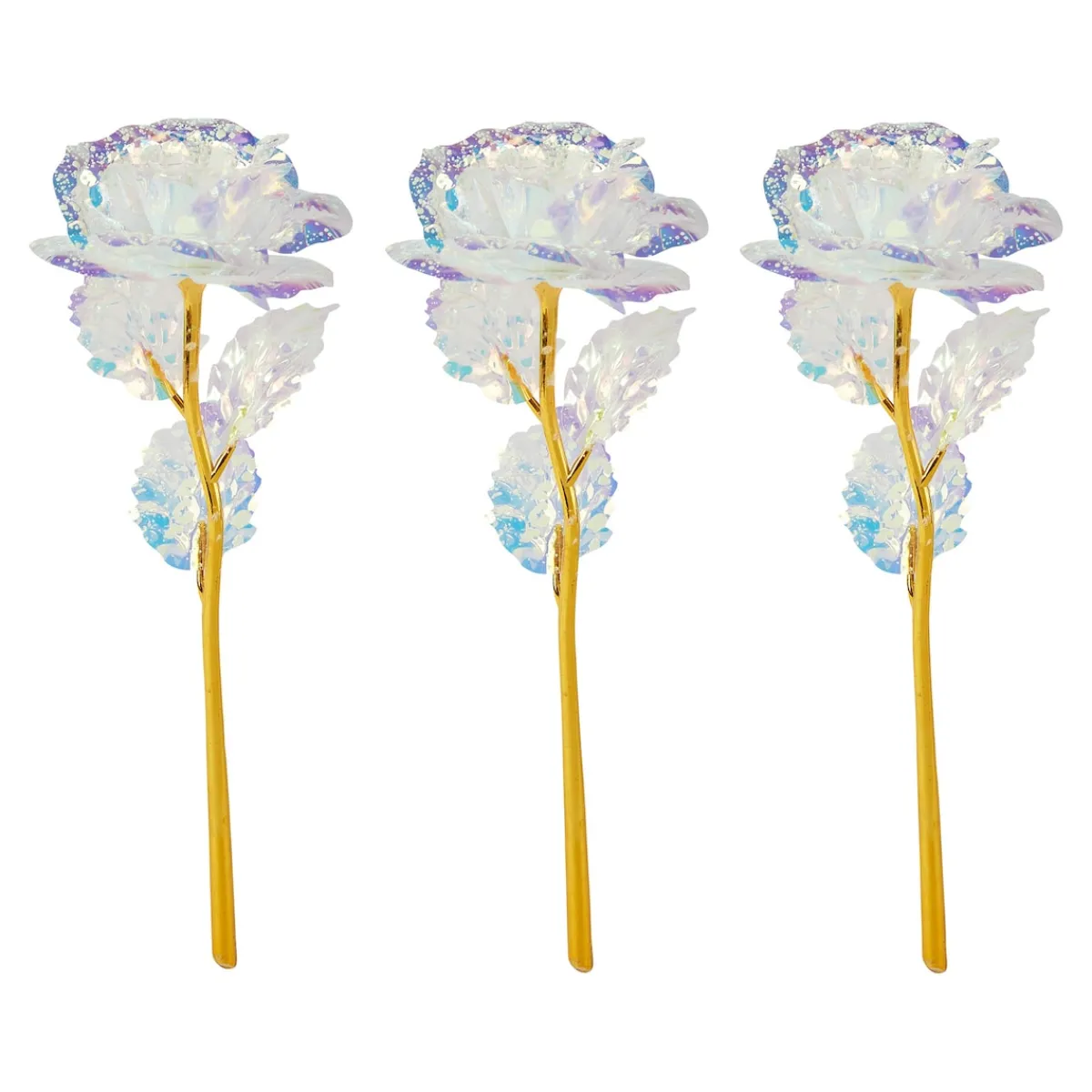 Am Tag umgibt das Rosentrio ein sanfter Schimmer von Perlmutt in sanften Farben – und in der Nacht leuchten die fein gearbeiteten Blüten in wunderschönen Grüntönen ganz von selbst. Ein geradezu magischer Anblick! Lieferung ohne Vase.