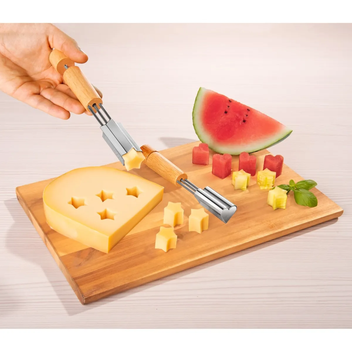 Das werden Ihre Freundinnen öfter sagen, wenn Sie diese einfachen, aber wirkungsvollen Deko-Ausstecher verwenden. Ob Stern oder Herz – einfach aus Obst-, Gemüse-, Käse- oder Teigscheiben die gewünschte Form ausstechen und losdekorieren!