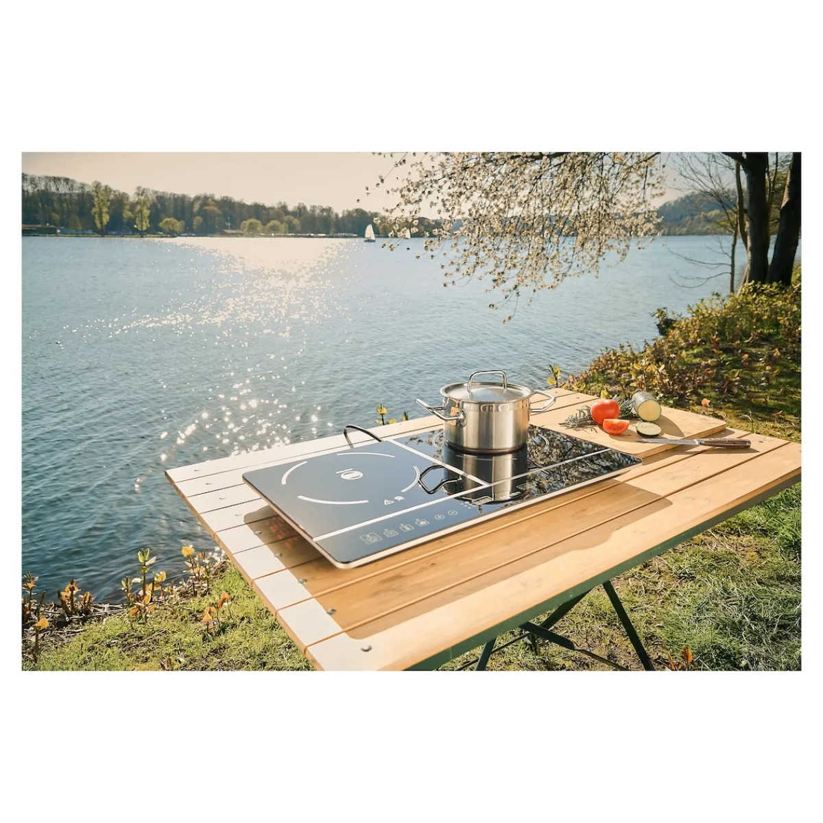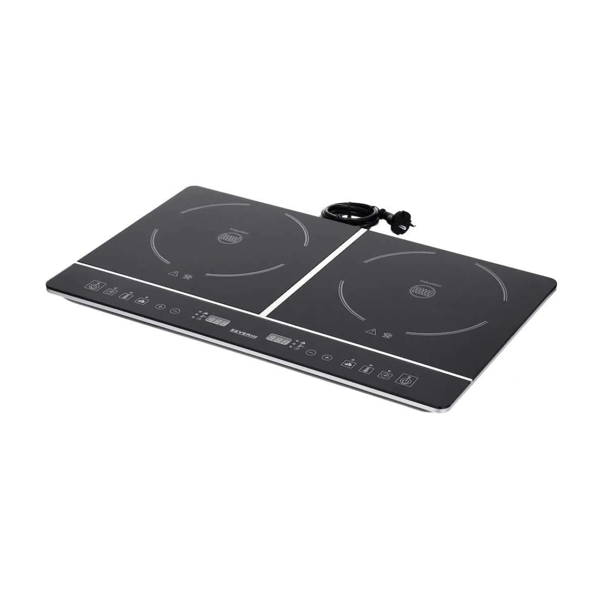 Erleben Sie Kochen auf höchstem Niveau mit unserem Doppel-Induktionskochfeld! Die beiden Glaskeramik-Kochfelder mit automatischer Topferkennung bieten optimale Flexibilität. Dank gleichmäßiger Wärmeverteilung und minimalem Energieverlust heizen sie schnell auf. Die Hitze entsteht direkt im Topfboden, nicht auf dem Kochfeld, wodurch Anbrennen vermieden wird. Der 180-Minuten-Timer mit Signalton und automatischer Abschaltung sorgt für präzise Zeitsteuerung. Das Touch-Bedienfeld mit beleuchtetem Display ermöglicht eine intuitive Bedienung. Entdecken Sie die Vorzüge der Induktionstechnologie und genießen Sie müheloses und effizientes Kochen mit unserem Doppel-Induktionskochfeld!