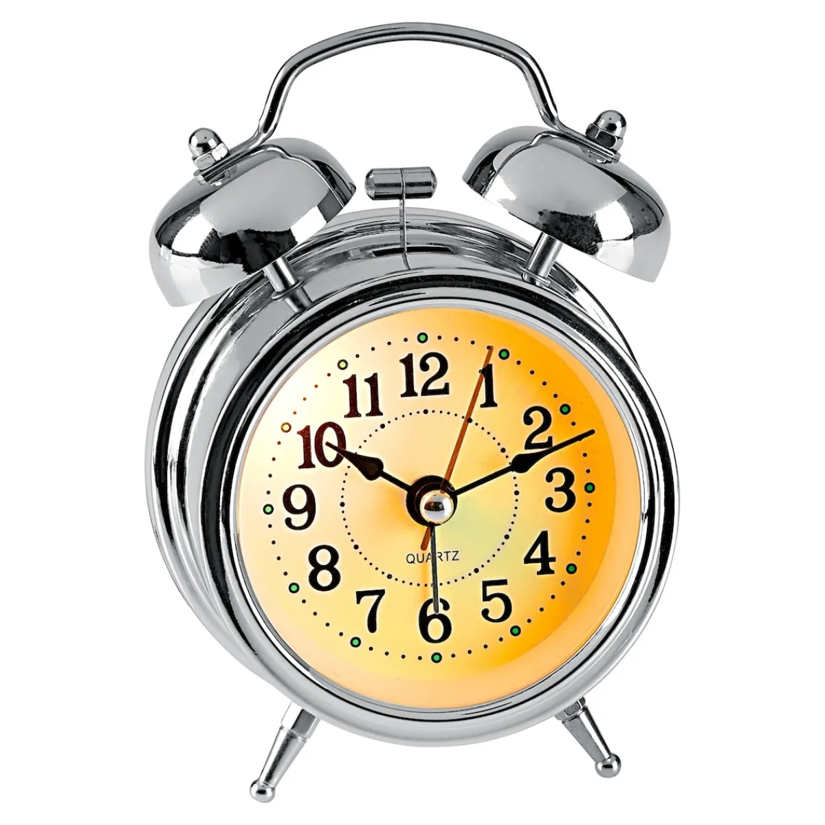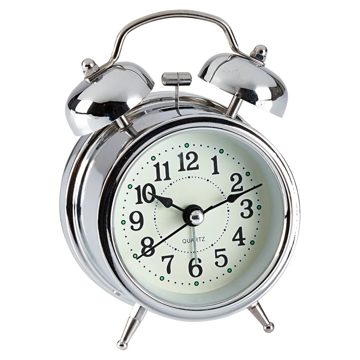 Dieser Doppelglockenwecker lässt mit seiner Lautstärke keine Zweifel aufkommen: Zeit zum Aufstehen! Einfache Bedienung mit je einer Taste für Uhrzeit und Weckalarm sowie übersichtliches, leicht lesbares Zifferblatt. Mit Nachtlichtfunktion: Rückseite drücken – schon sehen Sie dank LED-Beleuchtung des Zifferblatts im Dunkeln die Uhrzeit.