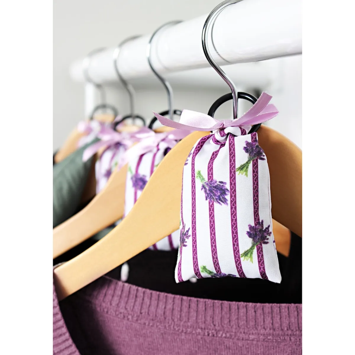 Mit diesem 5er-Set erhalten Sie eine erste Ausstattung an Duftsäckchen, die Sie nach Belieben auf Ihre Schubladen und Schränke verteilen können. Praktisch: Jedes Säckchen ist mit einem Kunststoffring ausgestattet, mit dem Sie das Säckchen auf dem Kleiderbügel aufhängen können.