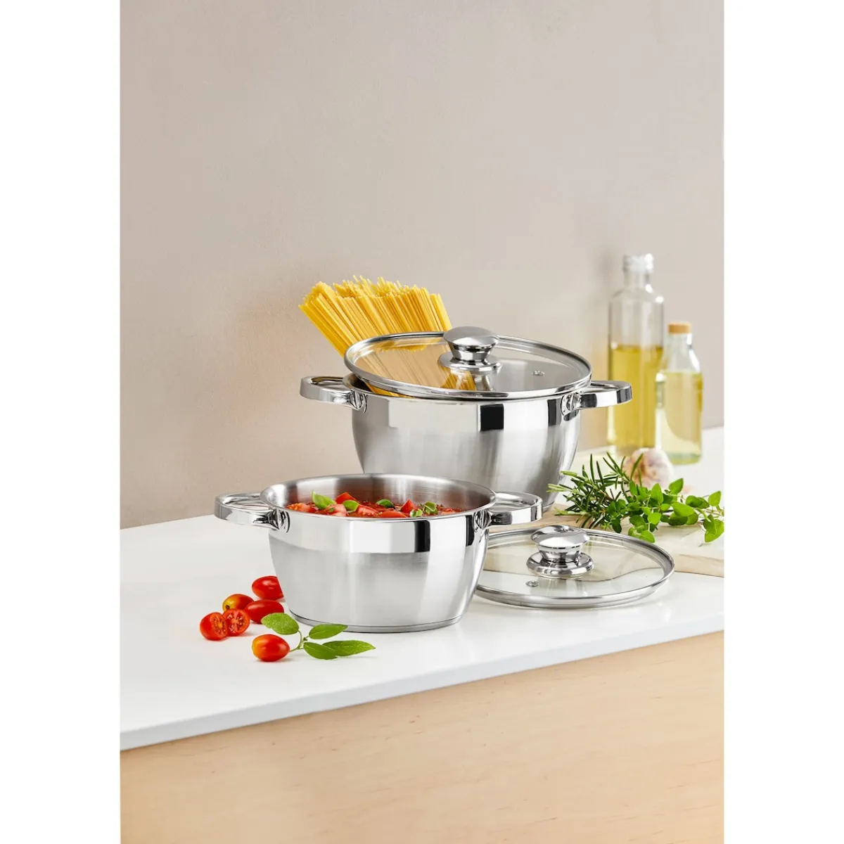Unser hochwertiges Topfset ist die perfekte Ergänzung für Ihre Küche. Egal, ob Sie Suppen, Soßen, Beilagen oder Eintöpfe zubereiten möchten, dieses Set bietet Ihnen die Vielseitigkeit, die Sie benötigen. Hergestellt aus robusten Materialien, ist es darauf ausgelegt, jahrelang zu halten.