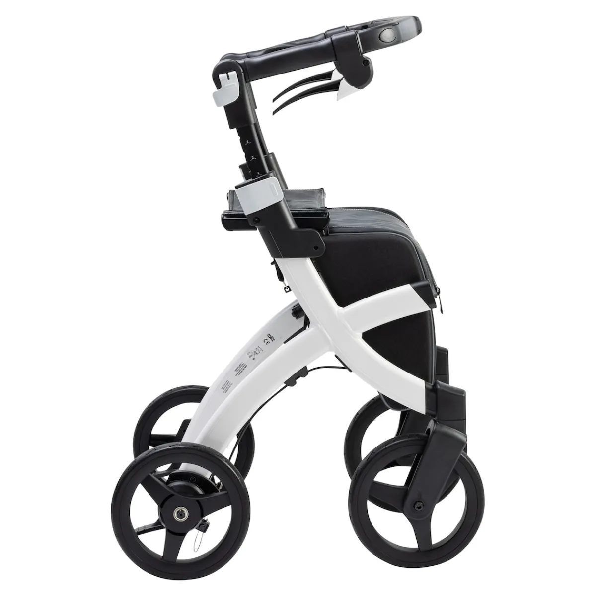 Das moderne, unauffällige Design erinnert eher an einen stylischen Shopper als an einen Rollator. Mit seinen klassischen Bremsgriffen können Sie sicher und präzise bremsen, unabhängig von den Wetterbedingungen. Die unsichtbaren Bremszüge im Rahmen sorgen für ein sauberes Erscheinungsbild.