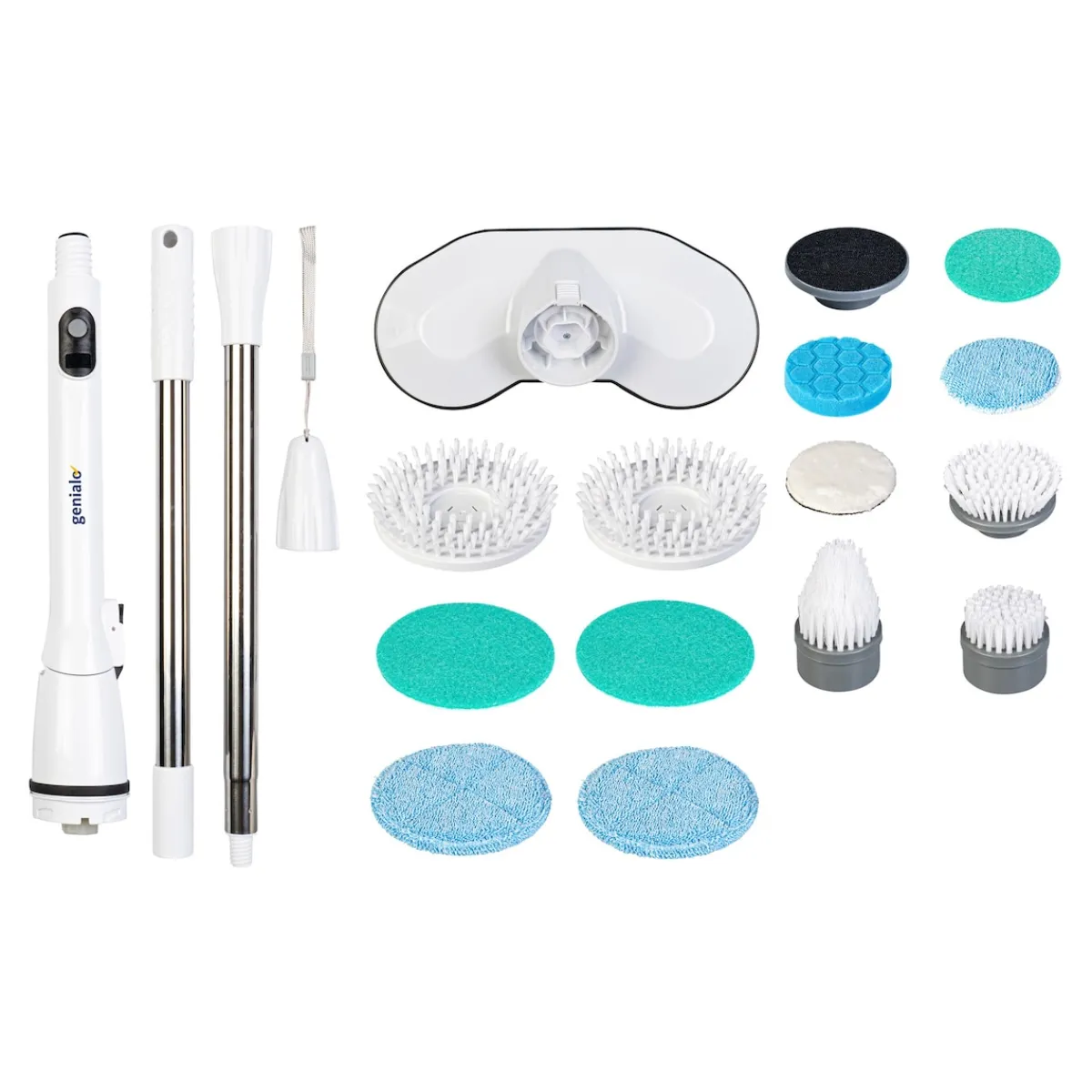 Schluss mit mühsamem Schrubben! Mit diesem elektrischen Multi-Wischer reinigen Sie Ihre Oberflächen so effizient wie nie zuvor. Ob als Handbürste oder mit Teleskopstiel für eine komfortable Reinigung im Stehen – er passt sich ganz Ihren Bedürfnissen an. Die wechselbaren Pads und Bürsten entfernen selbst hartnäckigsten Schmutz auf Fliesen, Glas und vielen anderen Oberflächen. Für perfekte Reinigungsergebnisse, ganz ohne Kraftaufwand. Inkl. USB-Ladekabel.