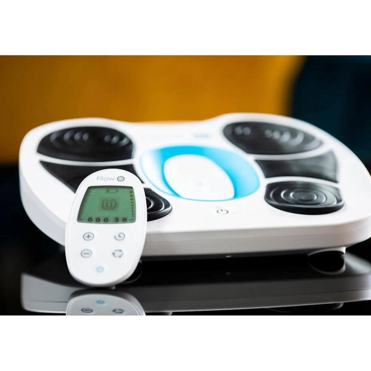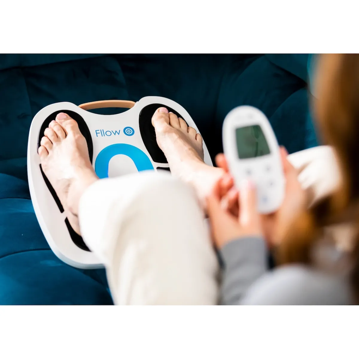 Das EMS-Fußmassagegerät „Fllow“ bietet Ihnen eine komfortable Möglichkeit, Ihre Beine und Füße zu aktivieren und zu entspannen – zu Hause oder unterwegs. Die moderne elektronische Muskelstimulation (EMS) sorgt für sanfte Impulse, die die Muskulatur in Waden und Beinen rhythmisch ansprechen. Ideal nach langem Sitzen, Stehen oder einem anstrengenden Tag. Zusätzliche Arthro-Pads erweitern die Anwendung auf Knie- und Oberschenkel für ein umfassendes Erlebnis. Dank der Relax-&-Recline-Funktion können Sie Fllow bequem im Sitzen oder Liegen nutzen – ob auf dem Sofa, im Bett oder im Sessel. Die Steuerung erfolgt intuitiv über eine kabellose Fernbedienung mit übersichtlichem Display. Drei Programme und 150 individuell einstellbare Intensitätsstufen ermöglichen eine flexible Anpassung. Der leistungsstarke Akku bietet bis zu 36 Stunden kabellosen Betrieb. Durch das kompakte Design und den praktischen Trageriemen ist Fllow leicht zu transportieren und platzsparend zu verstauen. Ob zu Hause, im Büro oder auf Reisen – Fllow sorgt für ein angenehmes und vielseitiges Anwendungserlebnis.