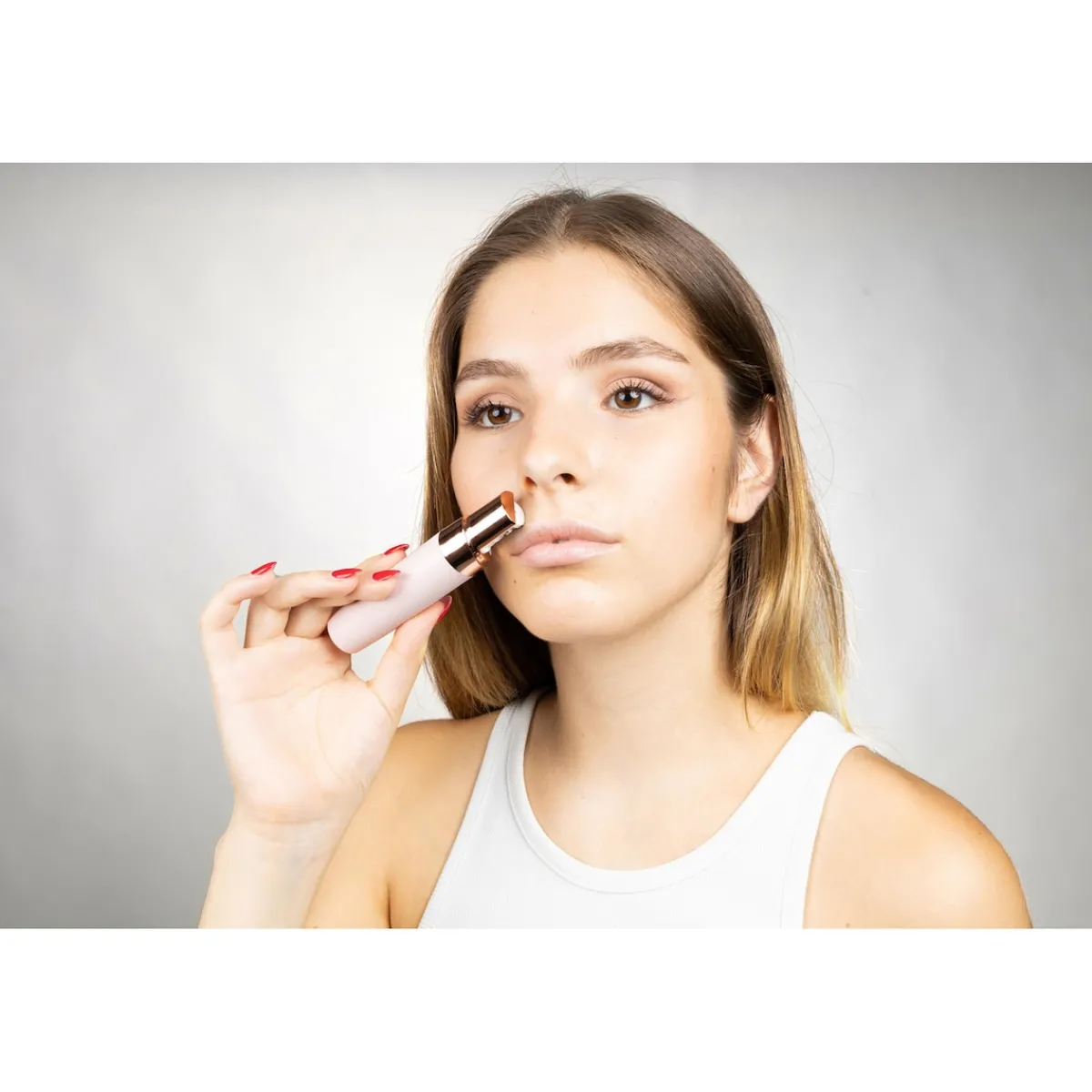 Entdecken Sie das Epiliergerät, das störende Härchen effektiv an der Wurzel entfernt, für lang anhaltende Glätte. Der schmale, präzise Epilierkopf eignet sich perfekt für Kinn, Oberlippe, Augenbrauen, Achseln und Bikinizone. Dank klingenloser Technologie ist er besonders sanft zur Haut und verursacht keine Irritationen. Das integrierte LED-Licht sorgt für optimale Sichtbarkeit, während das schlanke Lippenstift-Design das Gerät zum idealen Begleiter für unterwegs macht. Der Epilierkopf ist 18 Karat vergoldet und somit für alle Hauttypen geeignet. Aufladbares Deluxe-Modell erhältlich – für Frauen und Männer, die Wert auf Stil und Effizienz legen.