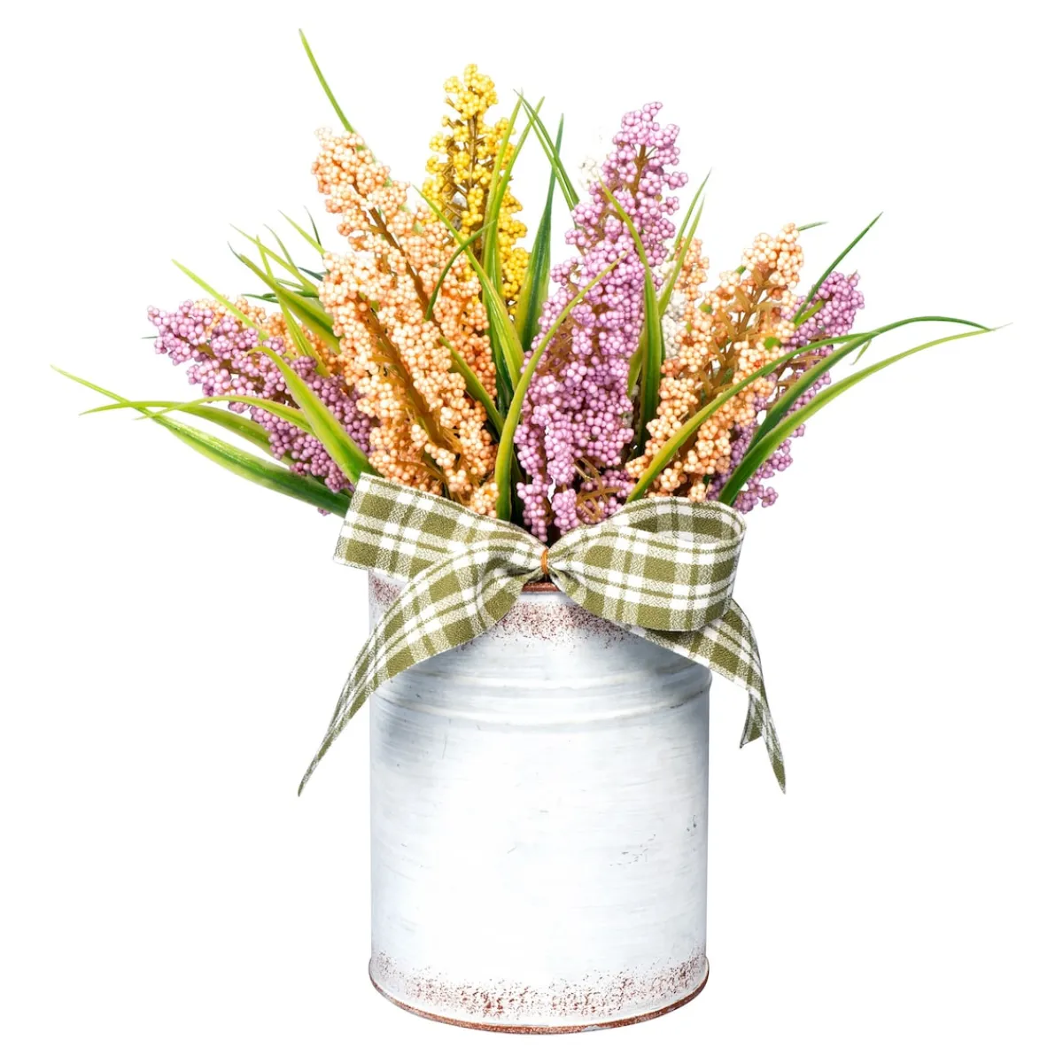 Verleihen Sie Ihrem Zuhause mit diesen naturgetreu gestalteten Erika-Blumen eine herbstliche Note. Liebevoll in einem nostalgischen Zinktopf arrangiert, „blüht“ das Gesteck das ganz Jahr über und sorgt für eine einladende Atmosphäre.