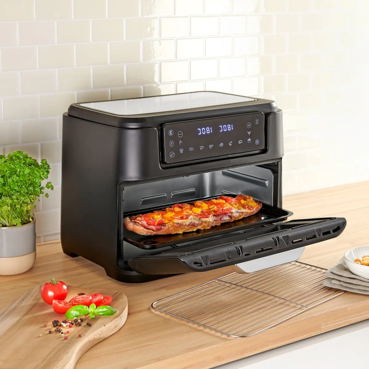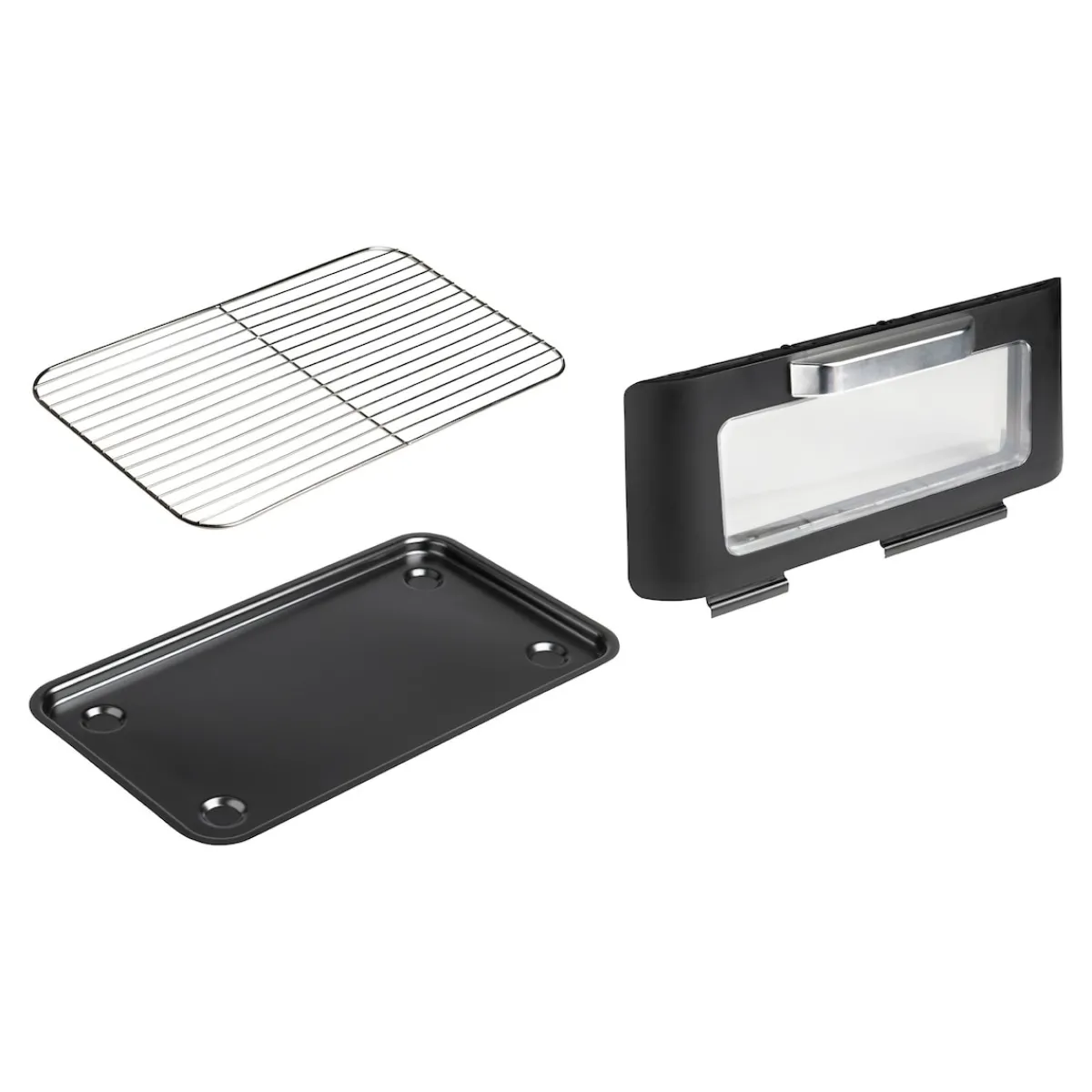 Wenn der Hunger mal größer ist, erweitern Sie das Gerät mit diesem praktischen Zubehör ganz einfach zum XXL-Backofen: Die XXL-Tür wird einfach eingeklickt – schon werden Ihre Köstlichkeiten auf dem passenden XXL-Backblech oder XXL-Gitterrost gebacken.