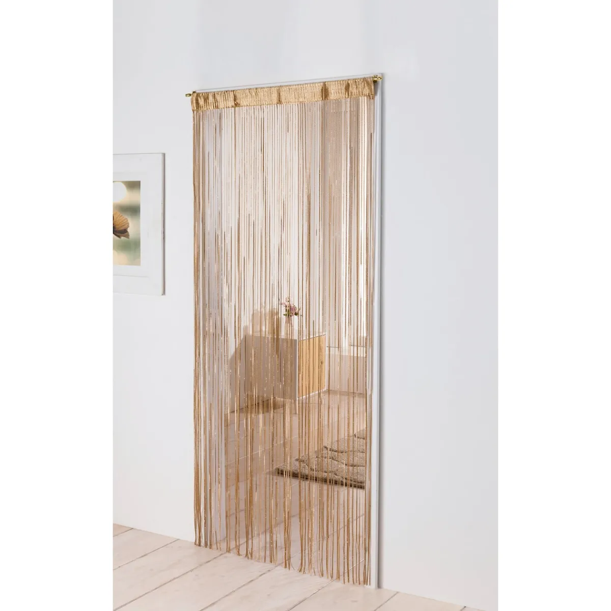 Praktisch und elegant zugleich: Der Vorhang schirmt Insekten ab und ziert mit eingewebten Glitzerfäden jeden Türrahmen. Das Material franst nicht aus und kann einfach mit der Schere auf die richtige Länge gekürzt werden. Mit Stangendurchzug.