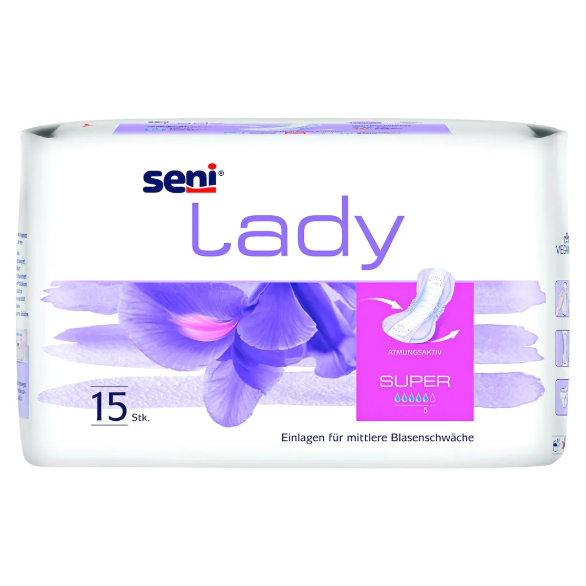 - Einlage Super: 15 St., 18 × 37 cm, 780 ml Saugstärke
