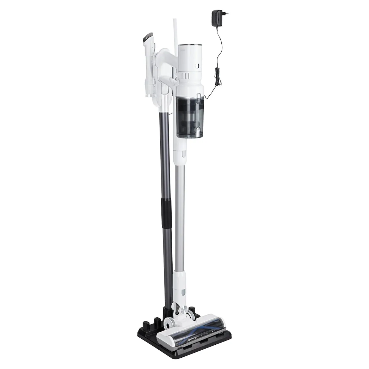 Unsere innovative Ladestation bietet die perfekte Lösung für die Aufbewahrung und das Aufladen des Akku-Zyklon-Staubsaugers „onePRO 2000“. Ob freistehend oder platzsparend an der Wand montiert – diese Station überzeugt durch ihre Vielseitigkeit. Die durchdachte Halterung gewährleistet nicht nur einen sicheren Ladevorgang, sondern ermöglicht auch die griffbereite Aufbewahrung von Reinigungsaufsätzen. Mit dieser Ladestation wird die Pflege Ihres Haushalts so unkompliziert wie nie zuvor.