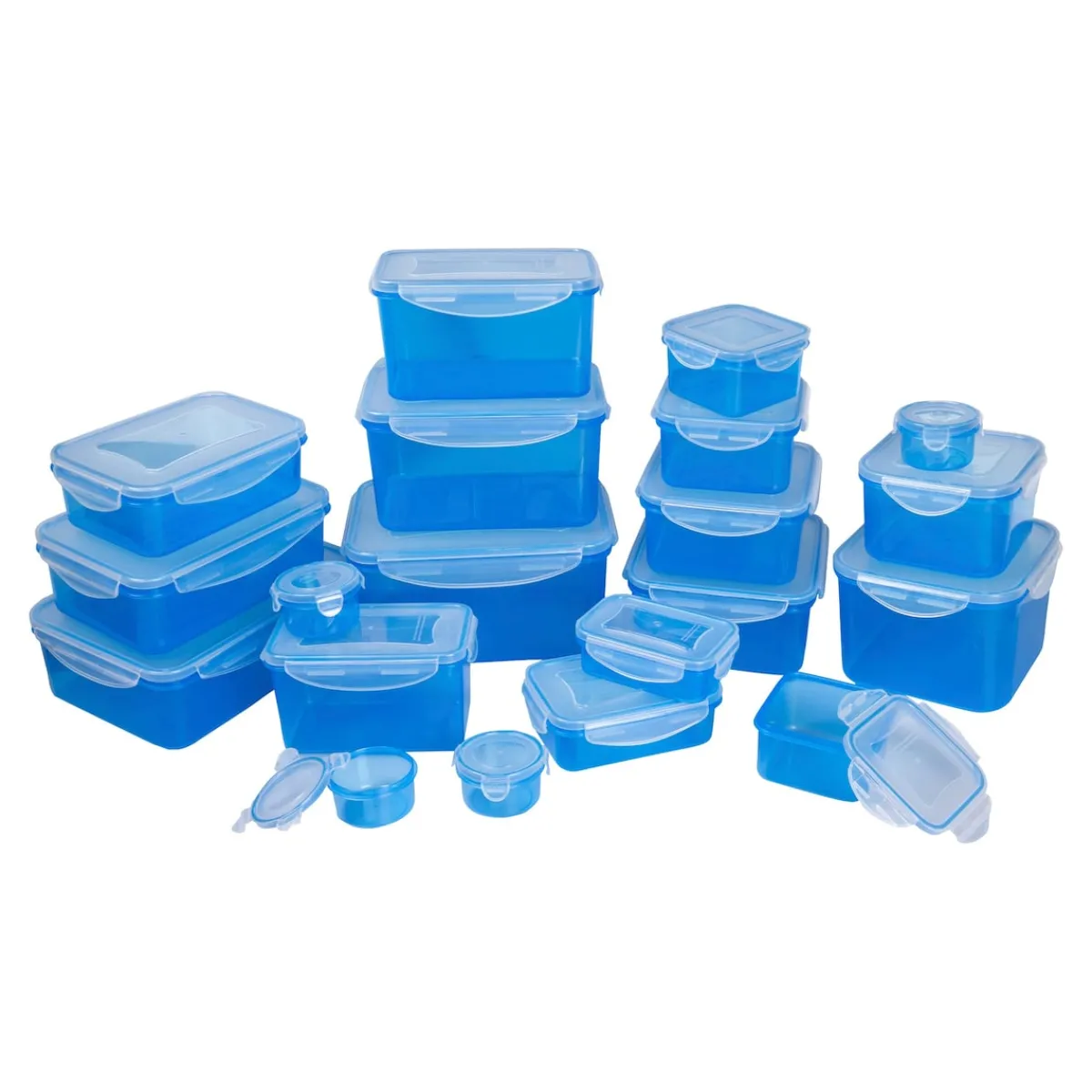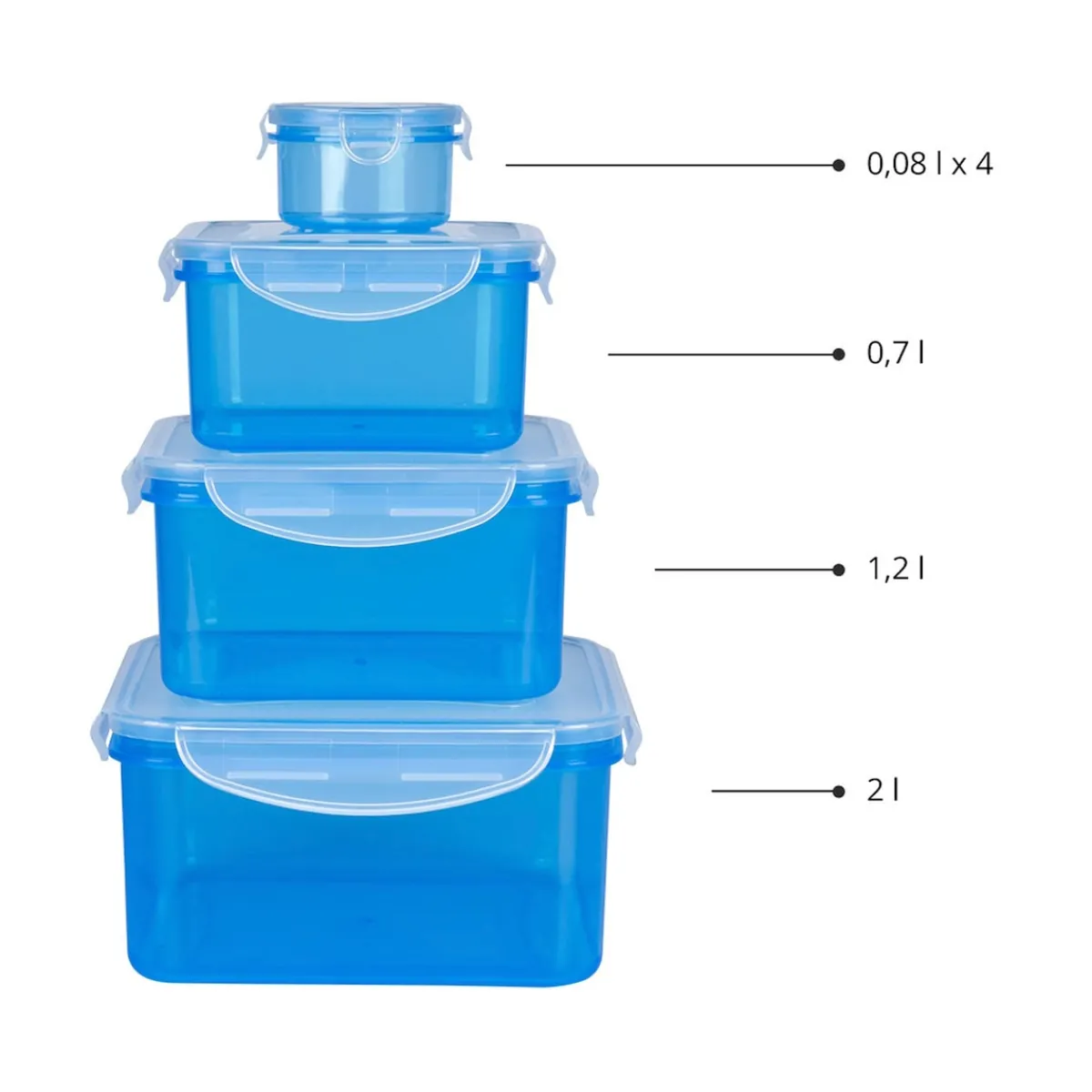 Dieses riesige Frischhaltedosen-Set besteht aus 20 Teilen in verschiedenen Größen von 0,08 bis 3,5 Litern und bietet Ihnen die perfekte Lösung für jede Aufgabe in der Küche. Die ineinander stapelbaren Dosen sparen wertvollen Platz und sorgen für eine aufgeräumte Küche. Dank der praktischen Klickverschluss-Deckel sind Ihre Speisen sicher und auslaufsicher verpackt – ideal für unterwegs oder das Büro. Die Dosen sind spülmaschinengeeignet, was die Reinigung zum Kinderspiel macht. Außerdem sind sie sowohl gefrierfach- als auch mikrowellengeeignet, was maximale Flexibilität für die Lebensmittelaufbewahrung und -zubereitung bietet. Mit diesem Set sind Sie in Ihrer Küche bestens aufgestellt und haben für jede Situation die passende Dose parat.