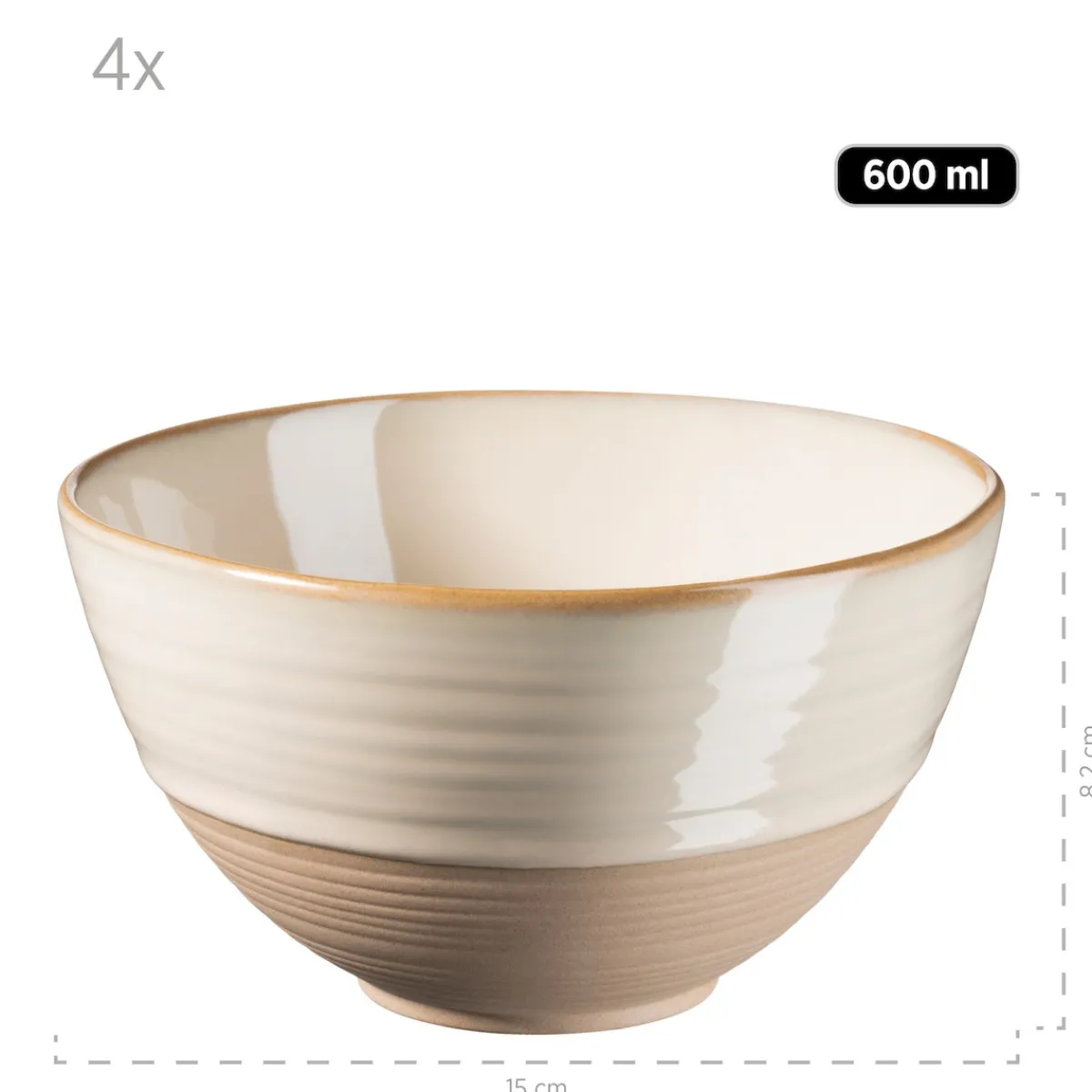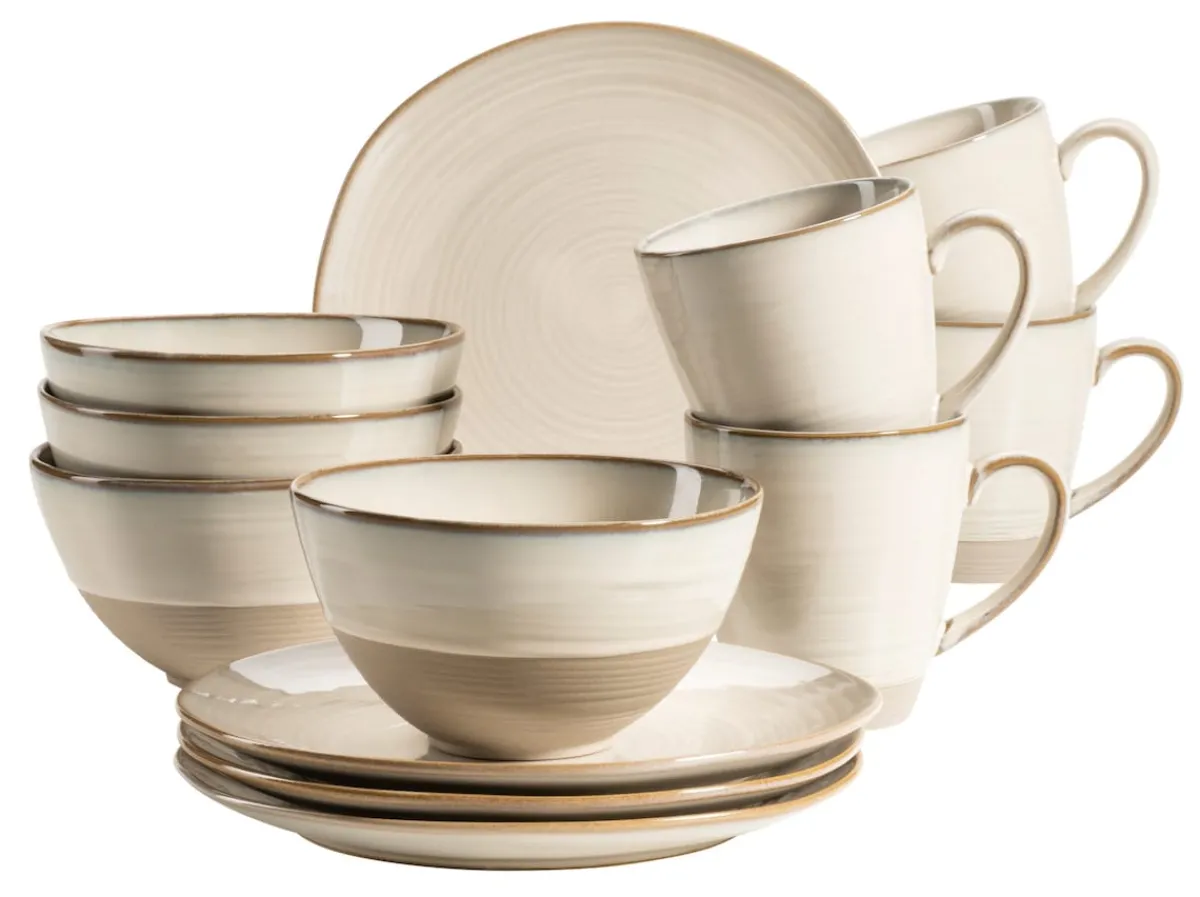 Dieses 12-teilige Frühstücksgeschirr Service aus hochwertigem Steinzeug besteht aus 4 Desserttellern à Ø 21 cm, 4 großen Müslischalen à Ø 15 cm (600 ml) und 4 großen Kaffeetassen à 420 ml