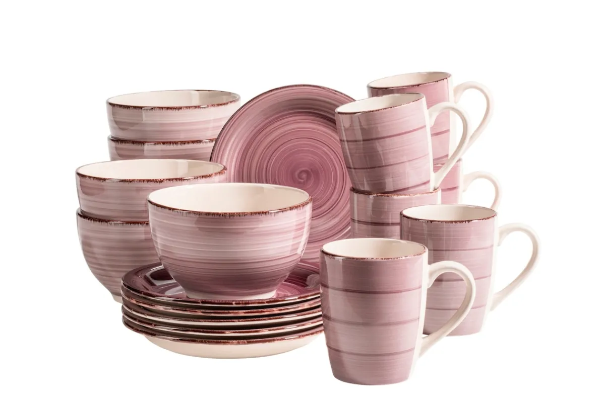 Die gesamte Serie LUMACA ist aus dickwandigem Steingut gefertigt. Mit den kreisförmig-verspielten Linienführungen kombiniert dieses Geschirr auf harmonische Weise klassische runde Formen mit einem farbenfrohen Vintage Look. LUMACA wird auch Ihren Esstisch zu etwas ganz Besonderem machen!