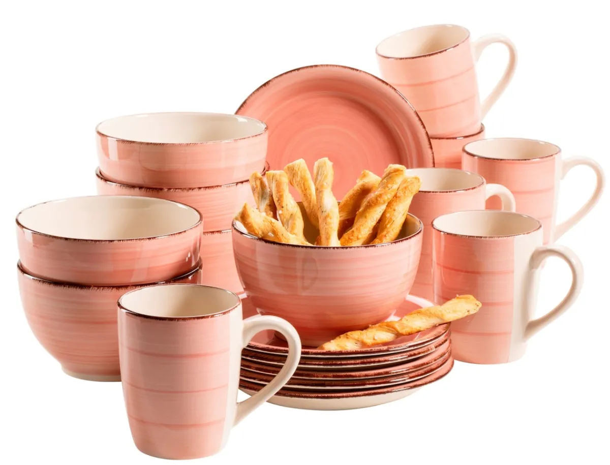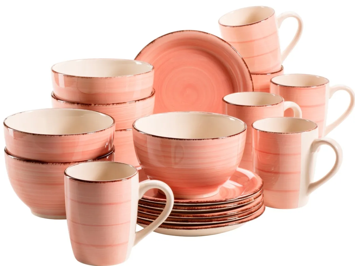 Die moderne Hausfrau Frühstücksgeschirr, Steingut Lumaca Koralle