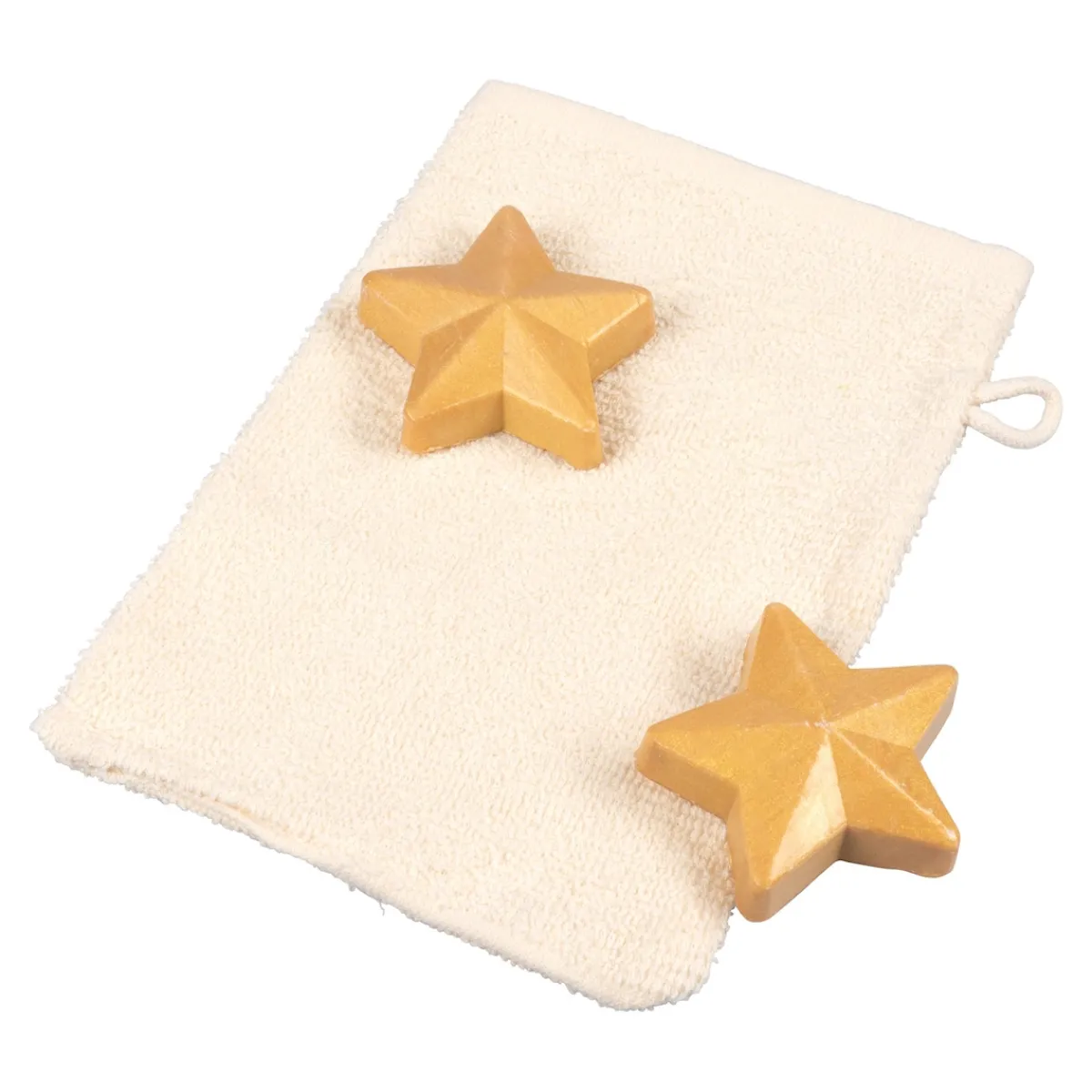 Goldene Sternstunden für Ihre Haut! Die liebevoll verpackten Seifen mit Waschhandschuh sind ein tolles Mitbringsel. Mit Vanilleduft.