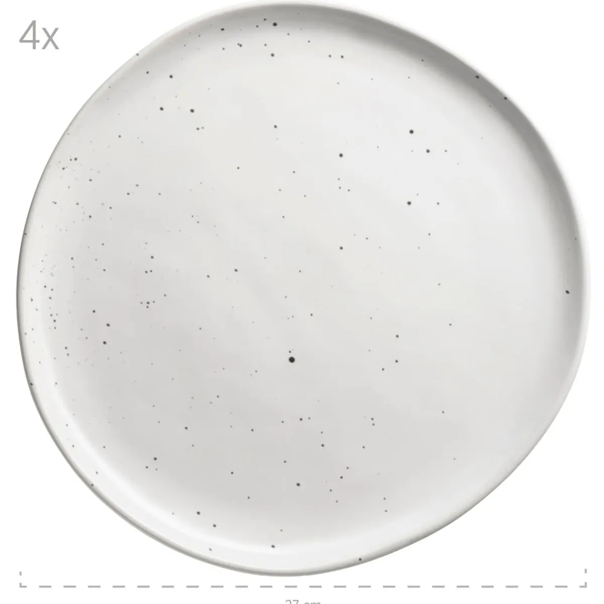 Die Keramikgeschirr Serie „Andoro“ vereint eine außergewöhnliche, unregelmäßige Form mit einer semi-matt glänzenden weißen Glasur, die mit dunkelgrauen Sprenkeln durchzogen ist. Die Speiseteller, Dessertteller, Schalen und Kaffeebecher sind vielseitig einsetzbar, sodass das Kombiset in Ihrem Zuhause oft zum Einsatz kommt. Das modern-schlichte Geschirr Set lässt sich perfekt zu individueller Dekoration im Vintage Stil kombinieren und lässt Ihre Speisen so richtig toll zur Geltung kommen.