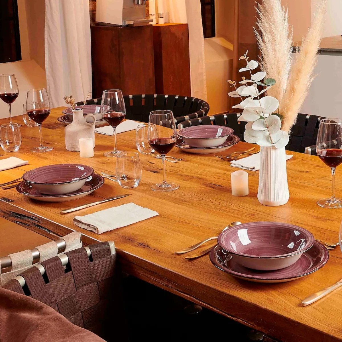 Dieses moderne, rustikal anmutende Geschirrset besteht aus