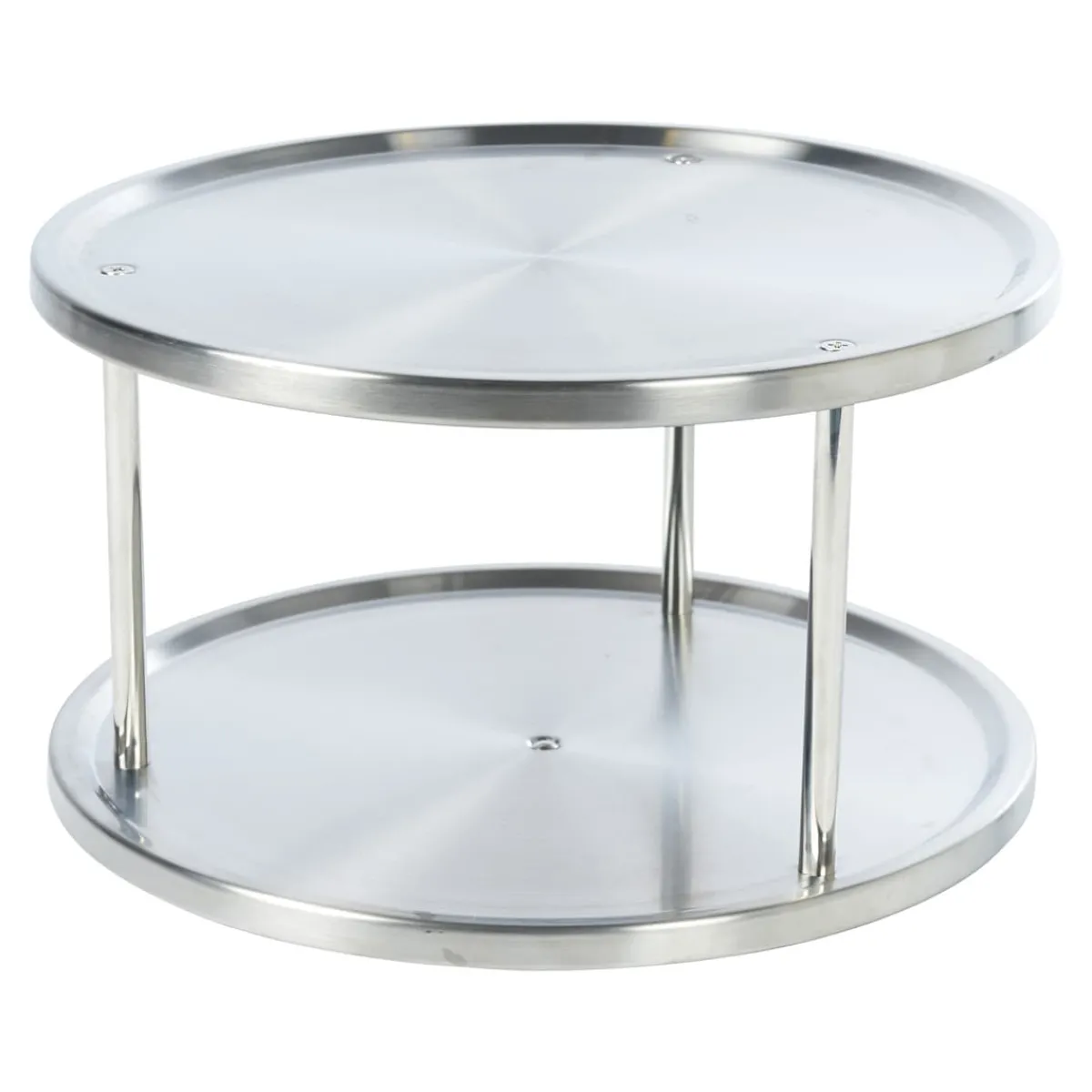 Mit seiner edlen Optik macht das Schrankrondell aber nicht um Schrank eine gute Figur, sondern bietet sich auch als dekorative Ordnungslösung für die Arbeitsplatte an. Besonders Hobbyköche lieben das Doppeldecker-Rondell, denn seine beiden Etagen lassen sich nutzen, um häufig verwendete Gewürze, Kräuter, Öle und Essige aufzubewahren. Langes Kramen im Gewürzregal gehört damit der Vergangenheit an, denn Salz, Safran oder das gute Walnussöl sind immer nur einen Dreh entfernt.