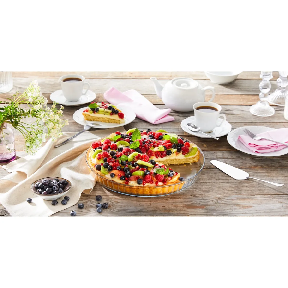 Diese Glas-Backplatte gehört eindeutig in Ihr Küchenrepertoire: Frisch aus dem Ofen, servieren Sie lecker gebackene Quiches, Tartes, Aufläufe und Co. stilecht direkt in der kratzbeständigen Backform.