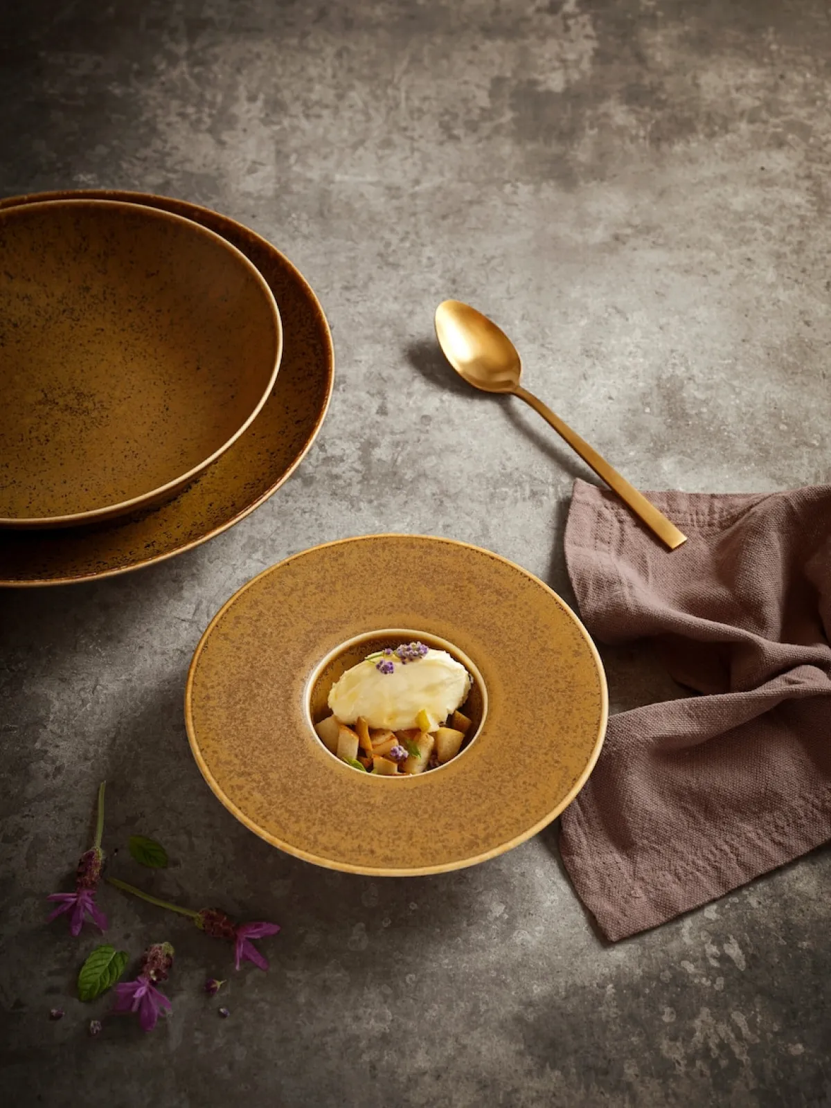 Die Porzellan Geschirrkollektion Grumpy“ der Marke MÄSER by costaverde verbindet Qualität mit einem modernen Vintage Look und aufwändiger Reaktivglasur. Die breiten, runden Coupe Formen bieten genug Platz für alle Gerichte. Die edle Farbkombination aus Gold und Bronze und die hochwertige Reaktivglasur erzeugen ein außergewöhnliches Dekor, welches jeden Teller einzigartig macht. Das Tafelservice „Grumpy“ ist mikrowellengeeignet und spülmaschinentauglich. Das Geschirr wird in einer auf Bruchsicherheit getesteten Versandverpackung aus ressourcenschonenden Materialien versendet. Für eine objektive Vergleichbarkeit gehen unsere Füllmengenangaben von einer randvollen Befüllung aus.