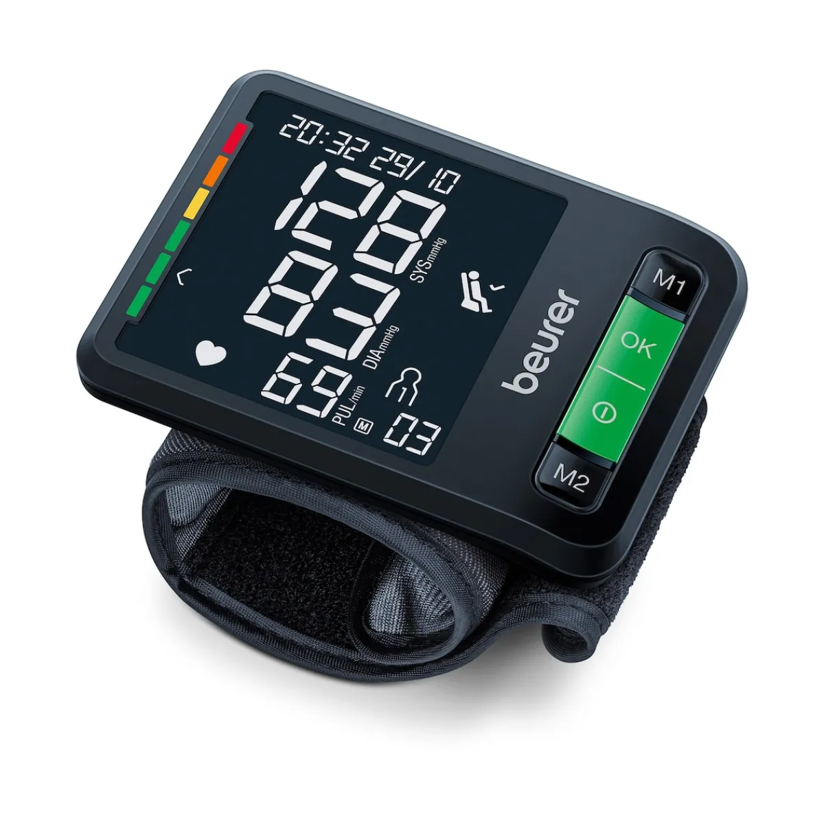 Das Beurer BC 87 Blutdruckmessgerät ermöglicht eine vollautomatische Blutdruck- und Pulsmessung am Handgelenk. Der patentierte Ruheindikator überprüft dabei den Ruhestand während der Messung und durch die Positionierungsanzeige wird die optimale Messposition auf Herzhöhe angezeigt. Durch die Inflation Technology wird ein ultimativer Messkomfort durch sanften Druckaufbau ermöglicht.