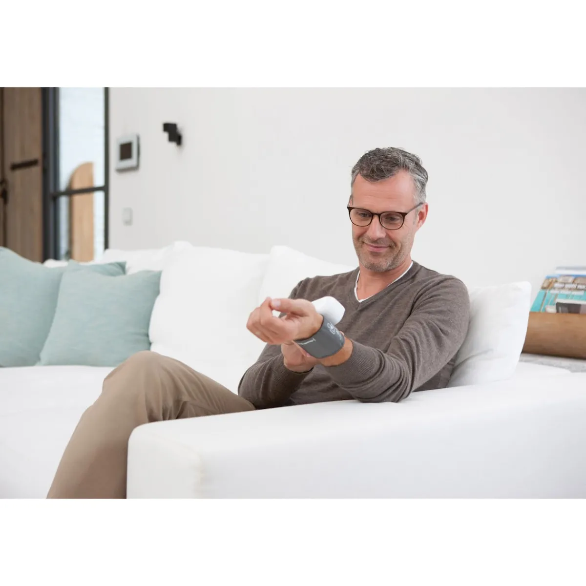 Das Handgelenk-Blutdruckmessgerät BW 345 von Medisana ermöglicht eine schnelle und zuverlässige Kontrolle Ihres Blutdrucks. Die Werte für Systole, Diastole, Puls sowie Datum und Uhrzeit werden klar auf dem beleuchteten LC-Display angezeigt. Dank der Ampel-Farbskala können Sie Ihre Messergebnisse sofort einordnen. Zwei Benutzer profitieren von je 199 Speicherplätzen, sodass langfristige Vergleiche möglich sind. Zusätzlich ermittelt das Gerät den Durchschnitt der letzten drei Messungen und warnt vor unregelmäßigem Herzschlag. Mit der komfortablen Handgelenkmanschette für Umfänge von 13,5 bis 19,5 cm passt es sich optimal an. Das kompakte Design mit praktischer Aufbewahrungsbox macht das Gerät perfekt für unterwegs. Automatische Abschaltung und energiesparender Batteriebetrieb sorgen für eine lange Nutzungsdauer.