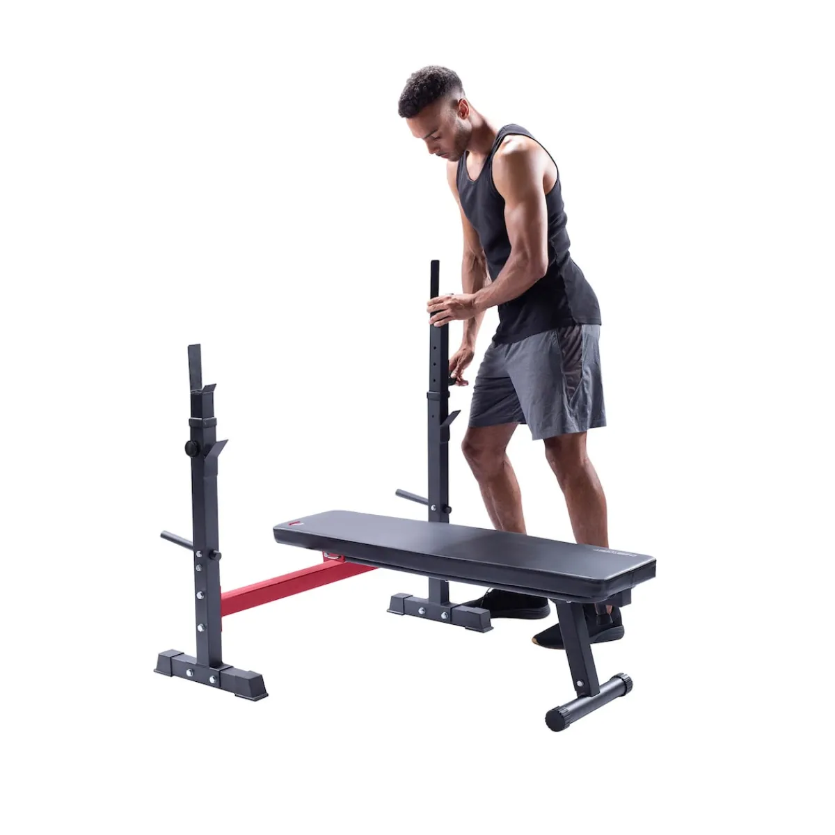 - Ablage für Langhantelstange und Gewichtsscheiben an der Hantelbank (auch in der zusammengeklappten