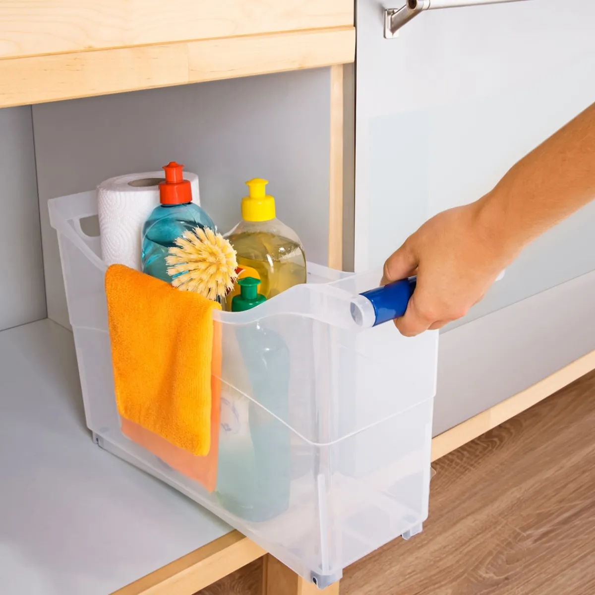 In jedem Haushalt gibt es Putzutensilien, Werkzeuge und andere nützliche Gegenstände, die nie dort sind, wo sie gebraucht werden, aber ansonsten immer im Weg herumliegen. Mit dem Haushalts-Roll-Organizer gehören diese Probleme der Vergangenheit an. Denn die transparente Box bietet genau dafür und alle anderen Kleinigkeiten Platz, die sonst keinen festen Platz finden. Hier lässt sich alles ordentlich unterbringen und – dank des transparenten Kunststoffs – auch von außen gut sehen. Langes Suchen und Wühlen in Kisten und Kartons ist nicht mehr nötig.