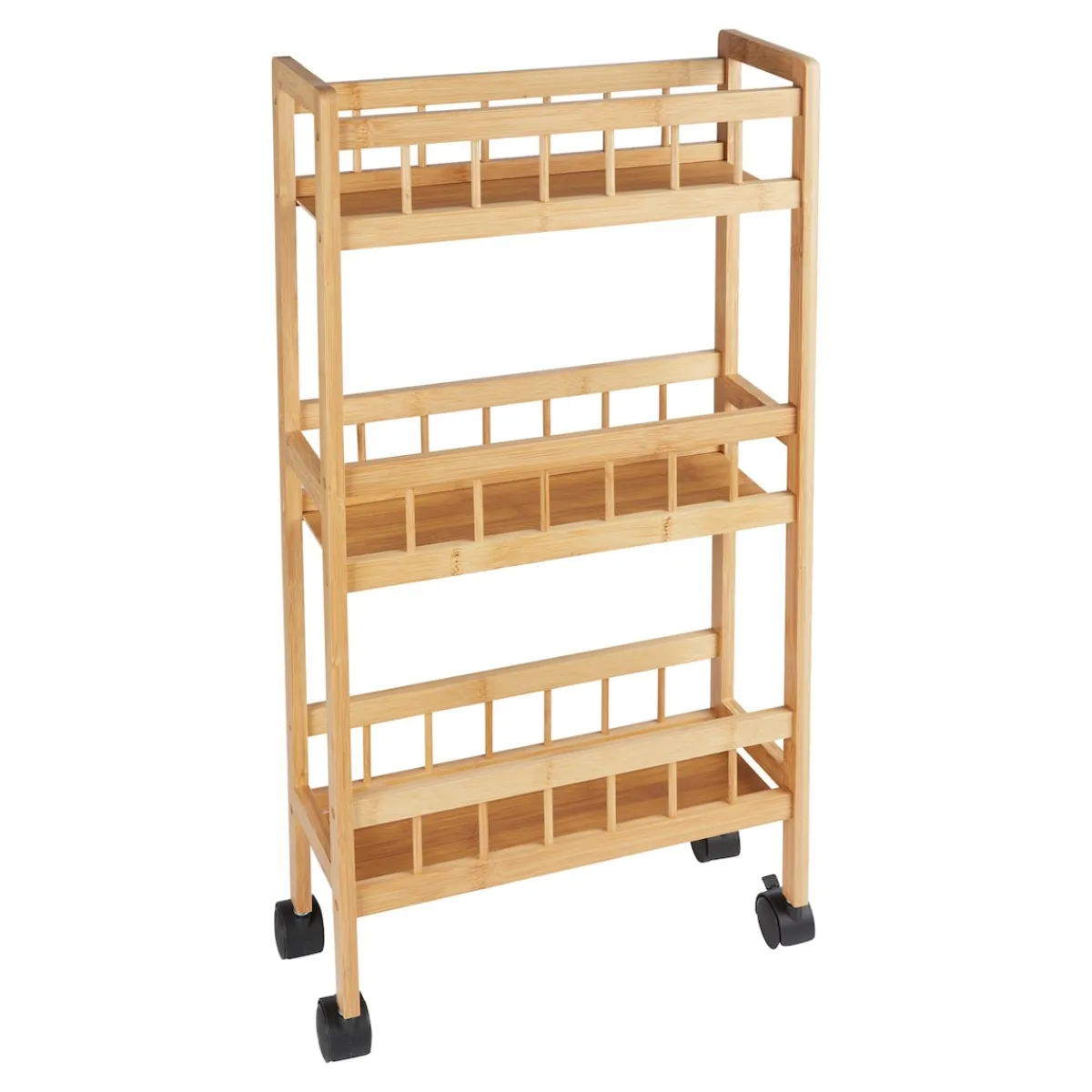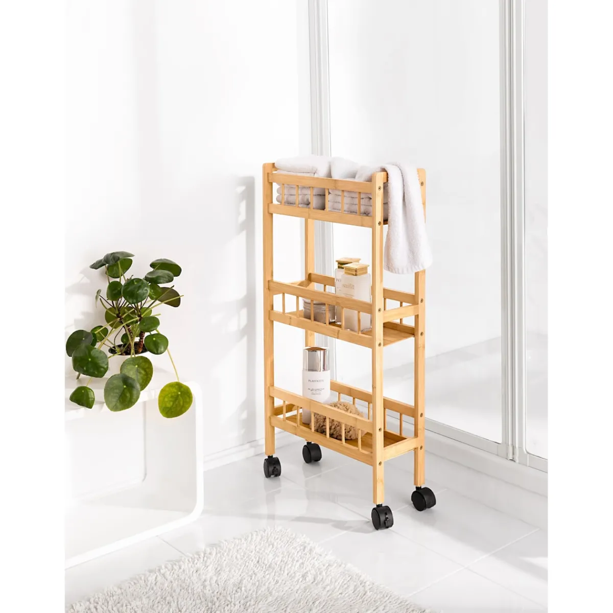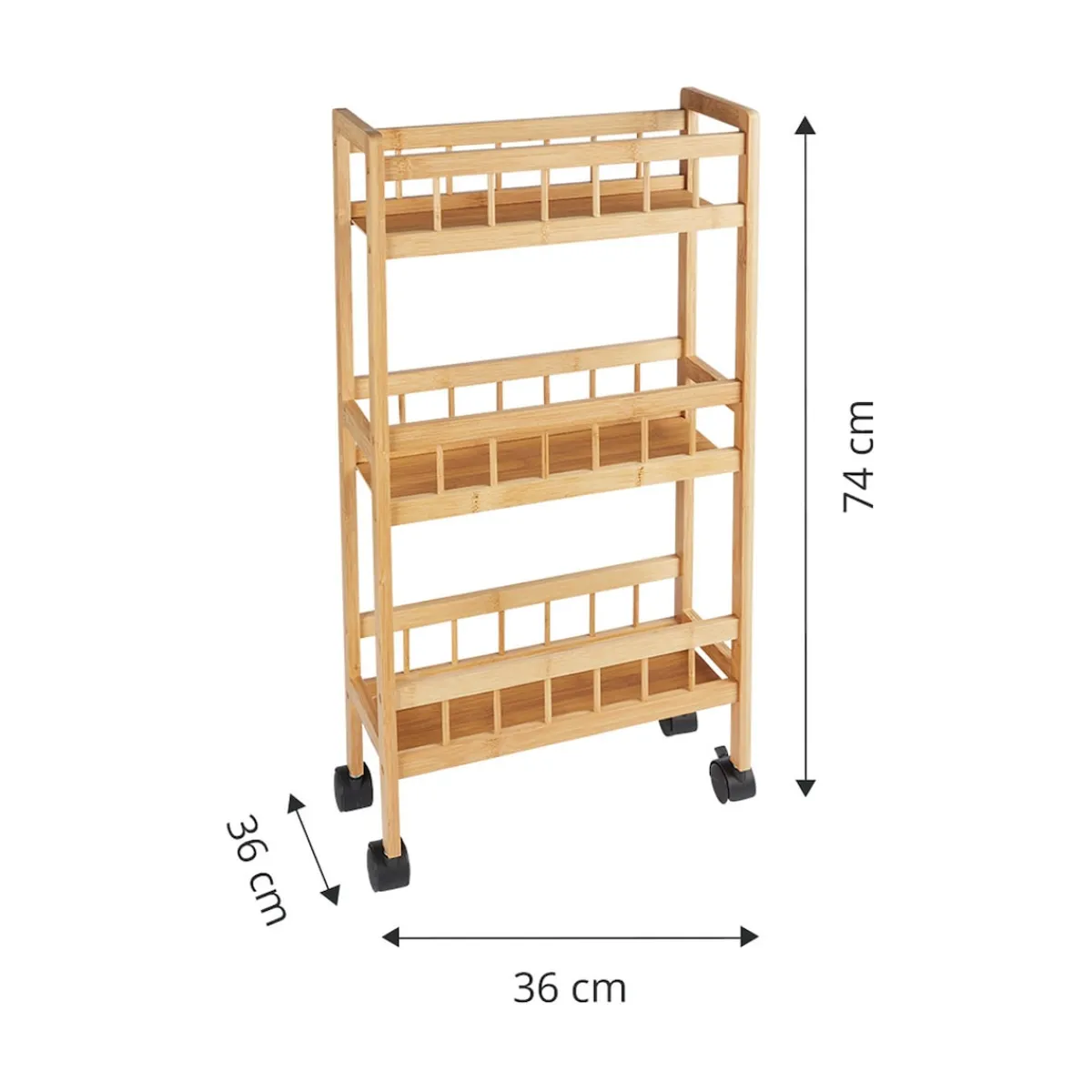 Egal, ob Sie zusätzlichen Stauraum in der Küche benötigen oder Ihre Putzutensilien griffbereit haben möchten, der Haushalts-Rollwagen „Bambus“ ist die ideale Lösung für eine aufgeräumte und organisierte Umgebung. Schaffen Sie Ordnung auf Rädern und genießen Sie die Flexibilität dieses praktischen Haushaltswagens!