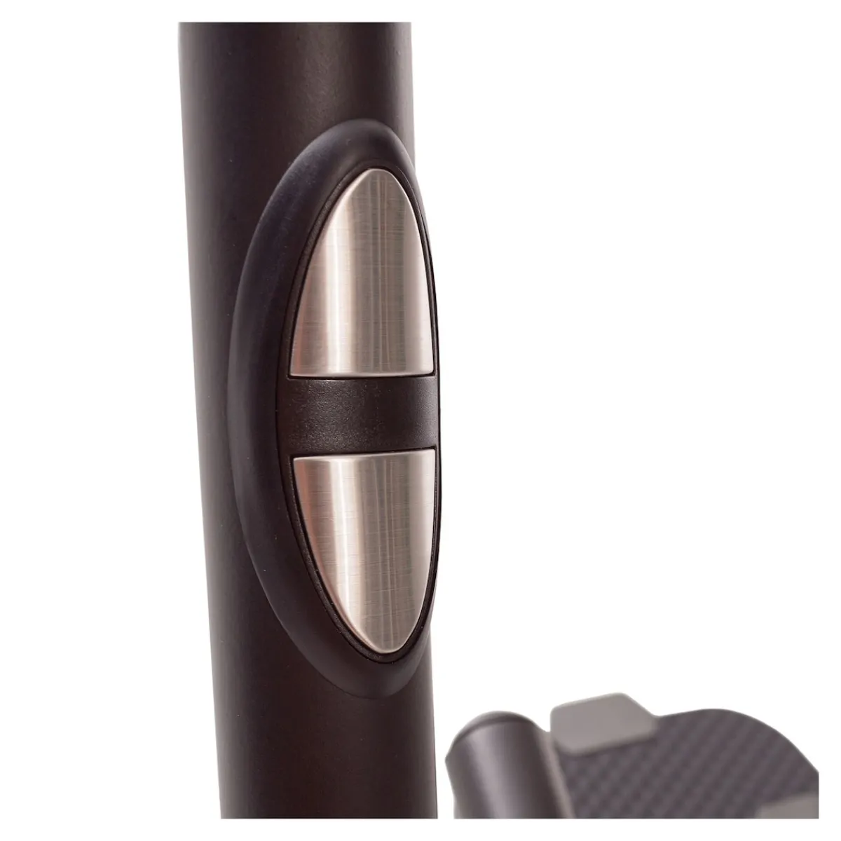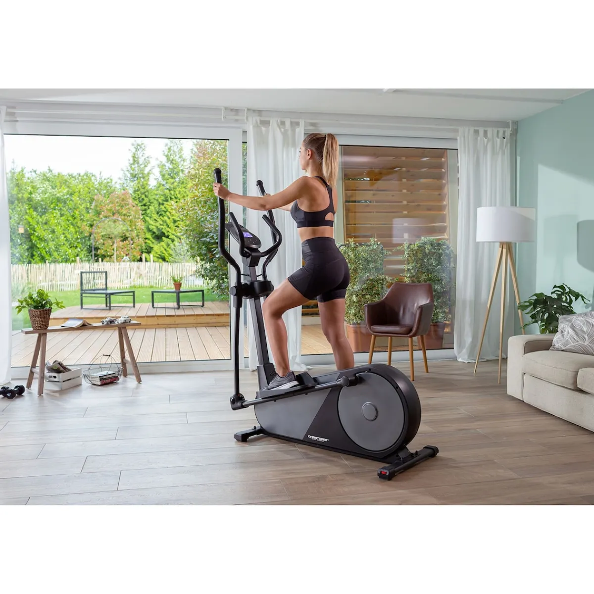 Die Handpulssensoren im Lenker ermöglichen eine Überwachung Ihrer Herzfrequenz während des Trainings, und für die Verwendung eines optionalen Pulsgurts ist bereits ein Empfänger im Computer integriert. Sowohl der Sattel als auch der Lenker sind neigungsverstellbar, um eine angenehme und individuelle Trainingsposition zu ermöglichen. Die rutschfesten Pedale mit separaten Pedalsicherungsriemen sorgen für eine stabile Fußposition während des Treibens.