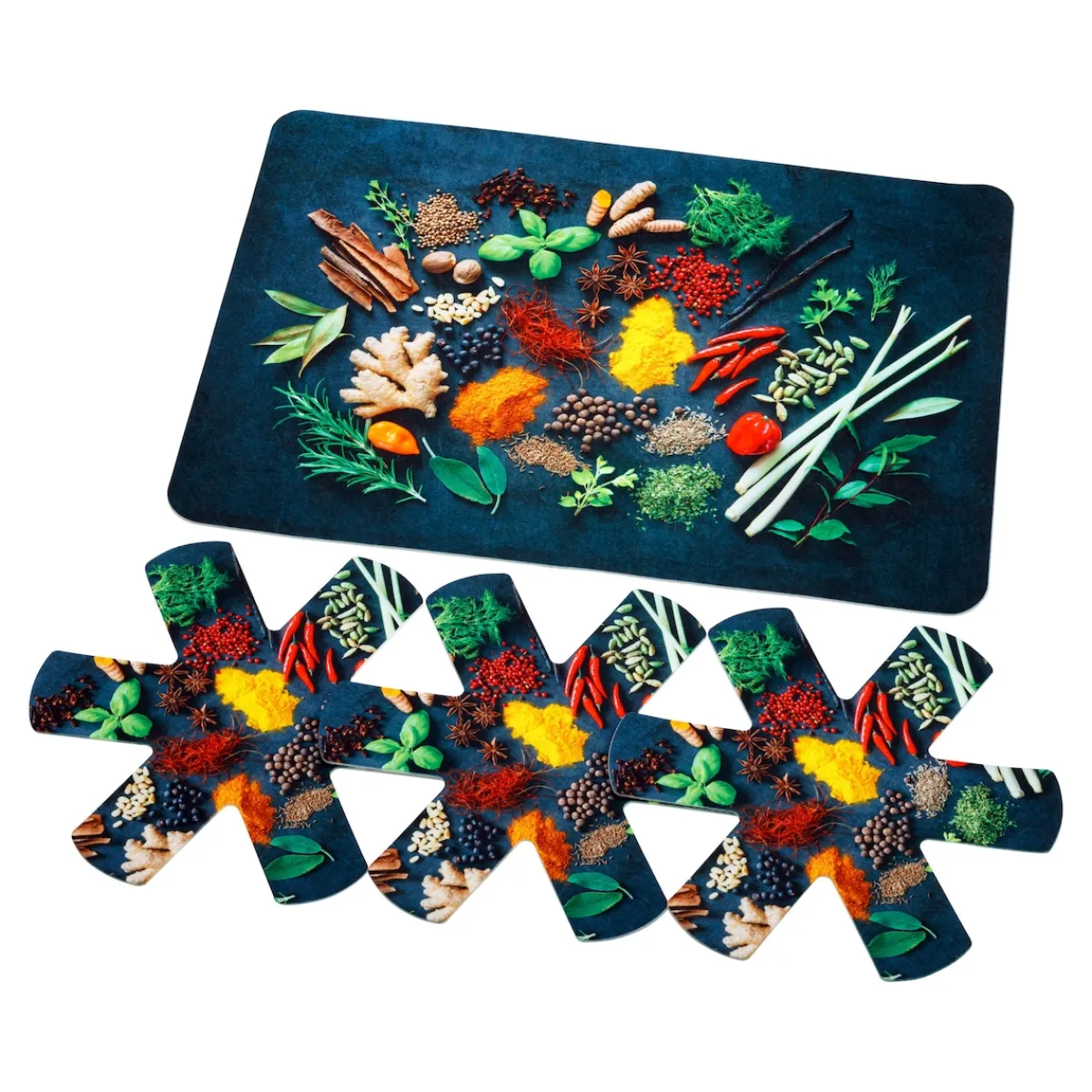Bringen Sie Würze in Ihre Küche: Mit dieser praktischen wie dekorativen Herdabdeckung schützen Sie die empfindliche Fläche vor Kratzern und Verschmutzungen und sorgen gleichzeitig für ein optisches Highlight. Mit den Pfannen-Schonern im selben Design können Sie Ihre Pfannen stapeln und Platz sparen!