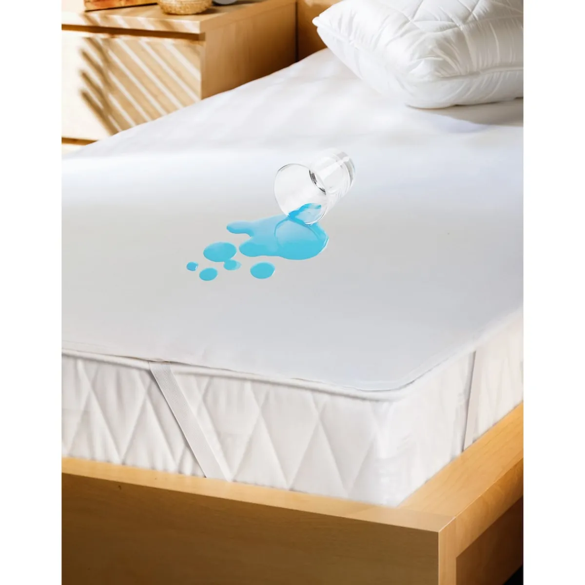Dazwischen eine sichere Nässesperre in Form einer atmungsaktiven Folie aus Polyurethan. Mit Einfassband rundum.