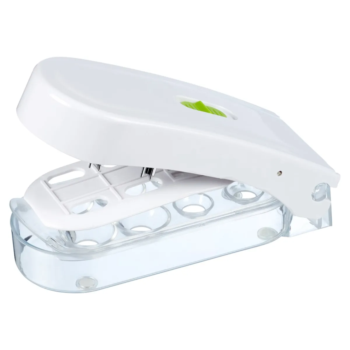 Mühsam Kirsche für Kirsche entsteinen? Vorbei! Mit diesem handlichen und effizienten Helfer können Sie bis zu 4 Kirschen gleichzeitig verarbeiten! Entkernt Kirschen jeder Größe problemlos. Die Steine fallen direkt in den darunter liegenden Auffangbehälter!