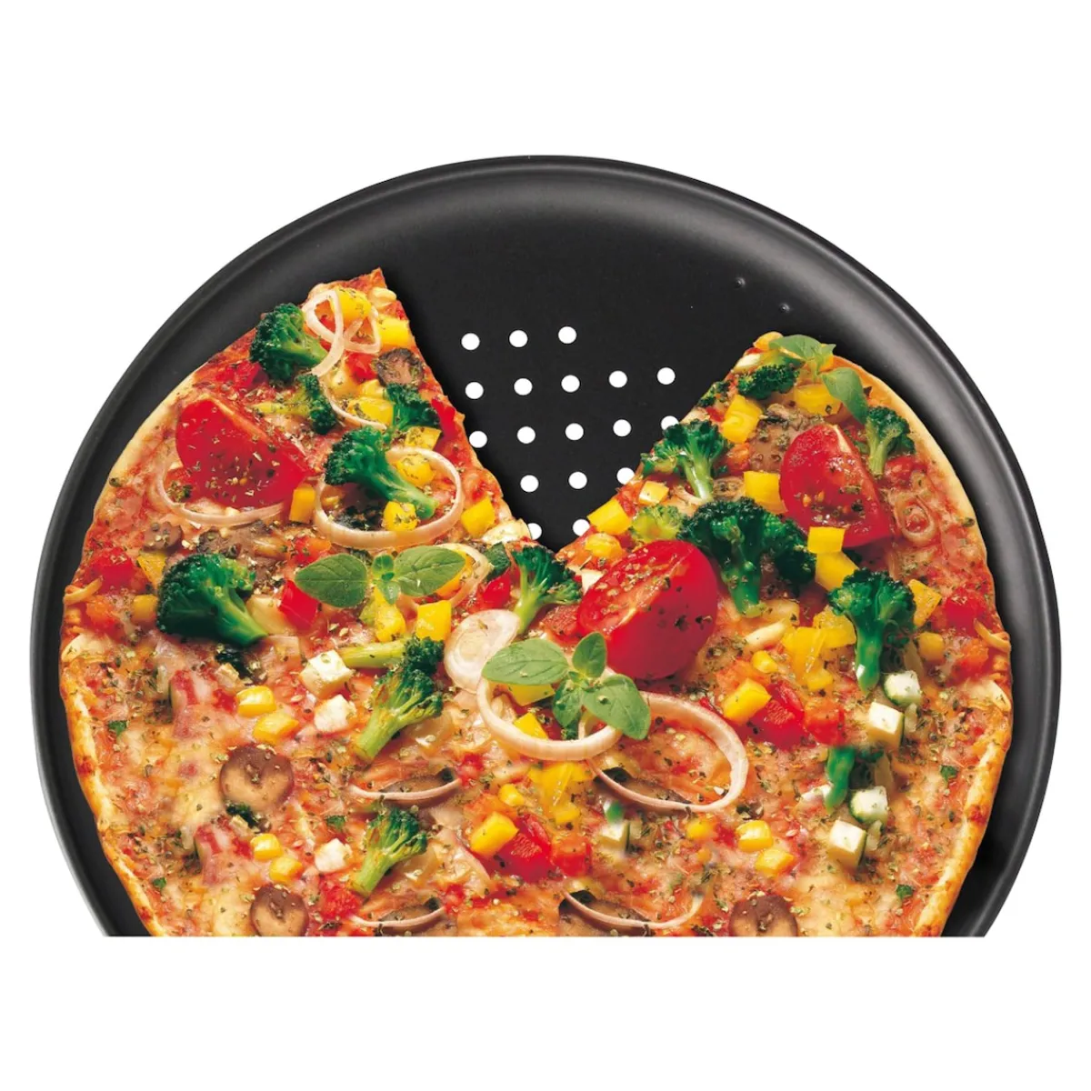 Perforiertes, klassisch rundes Pizzablech von ZENKER, ideal für das knusprige Aufbacken von Tiefkühlprodukten. Dank der Antihaftbeschichtung Teflon Classic lässt sich das Backgut einfach lösen. Hitzebeständig bis + 230 °C.