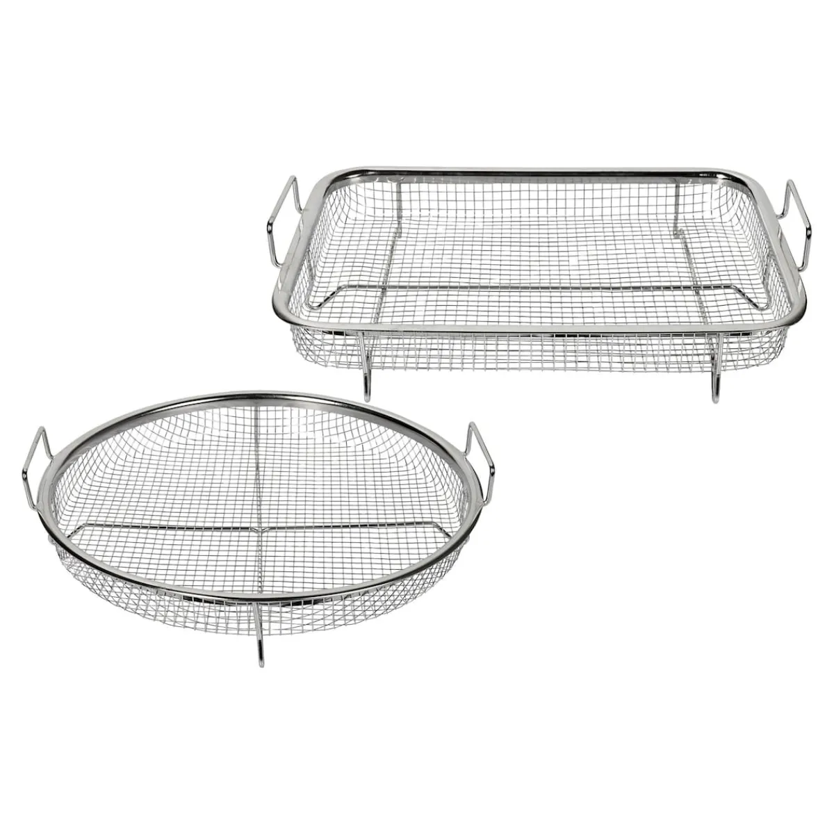 Hier kommt die Lösung für knusprige Pommes, Kroketten, Hähnchen und Co.: Die Grillkörbe sorgen mit ihrer Gitterstruktur für leckere, krosse Ergebnisse – Ihre Lieben werden begeistert sein! Dank praktischer Griffe können die Speisen schnell und einfach aus dem Backofen geholt werden. Auch ideal für die Zubereitung von Gemüse. Hitzebeständig bis +300 °C. Spülmaschinengeeignet.