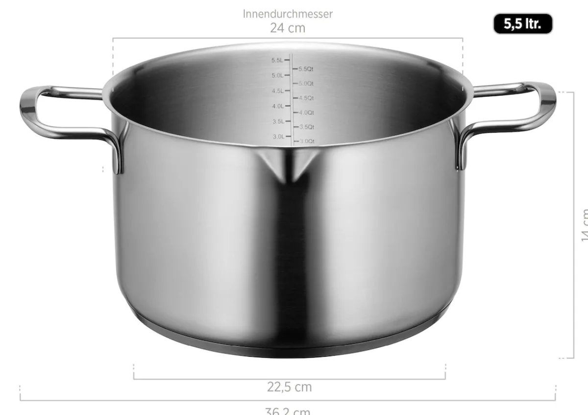 Dieser Artikel besteht aus einem Deckel sowie einem Kochtopf mit folgenden folgenden Maßen: