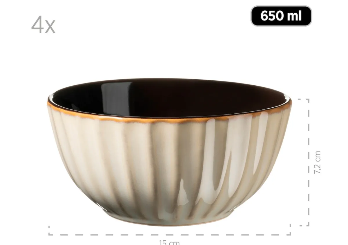 Die aufregende Kombination aus runden Retro-Formen mit Wellenrelief einerseits und einer modernen, unregelmäßigen Glasurtechnik mit schwarzen Akzenten andererseits verleiht der Tafelgeschirr-Kollektion „Confino“ eine ganz besondere Eleganz. Die Keramikgeschirr-Serie der österreichischen Traditionsmarke MÄSER wird aus hochwertigem Steinzeug gefertigt, welches nicht mit dem deutlich brüchigeren Steingut zu verwechseln ist. Die natürlich wirkenden Farbvarianten dieser Kollektion lassen sich harmonisch miteinander kombinieren. Dieses Set wird in einer vielfach auf Bruchsicherheit getesteten Paketversandverpackung aus nachhaltigen Materialien versendet. Bitte beachten Sie: Diese Kollektion wird händisch bunt lasiert, wodurch minimale Unebenheiten der Glasur, kleine Einschlüsse und leichte Farbabweichungen auftreten können. Zur besseren objektiven Vergleichbarkeit gehen unsere Füllmengenangaben von einer randvollen Befüllung aus.