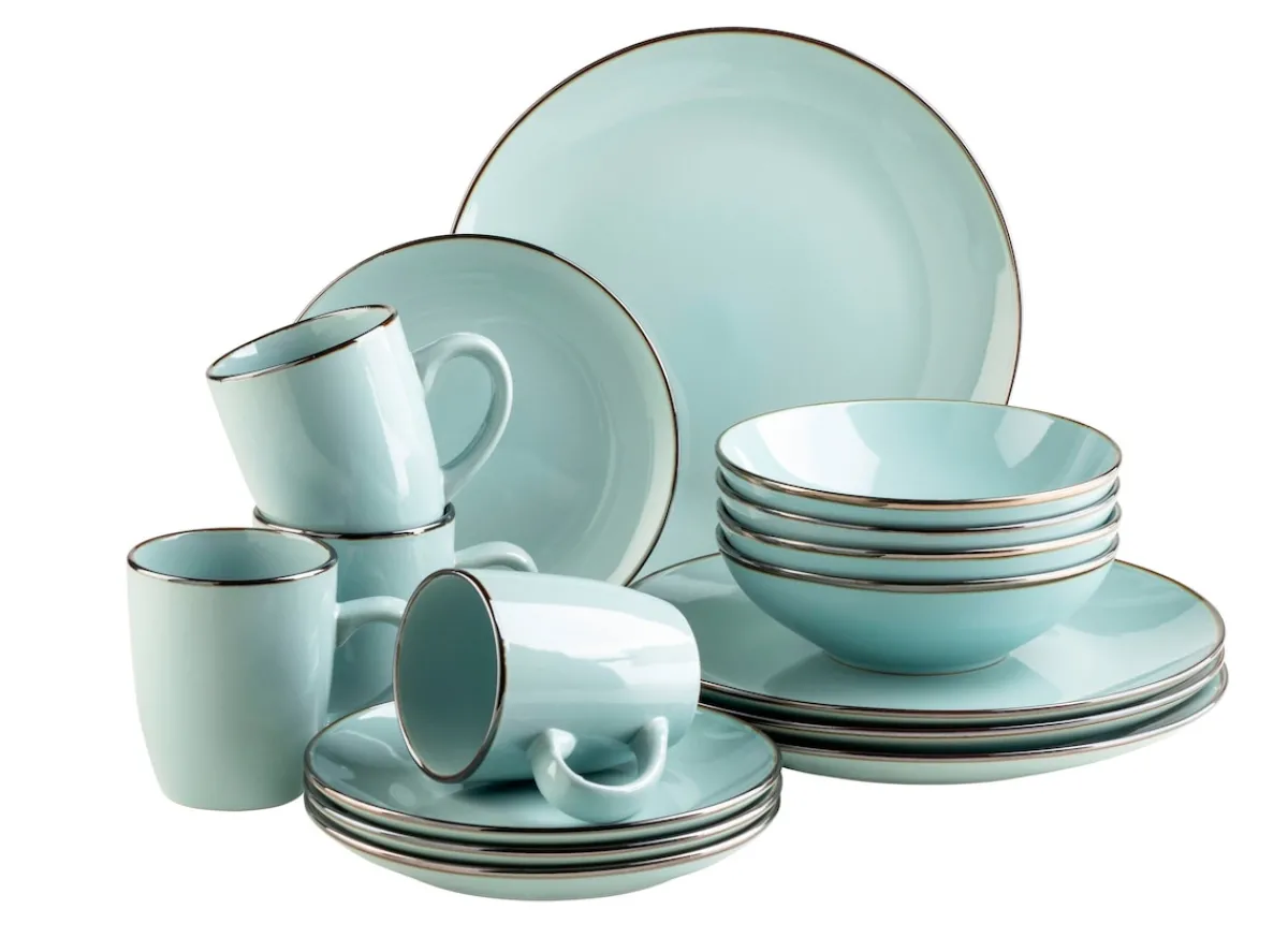 Die moderne Hausfrau Kombiservice, Steinzeug METALLIC RIM Mint