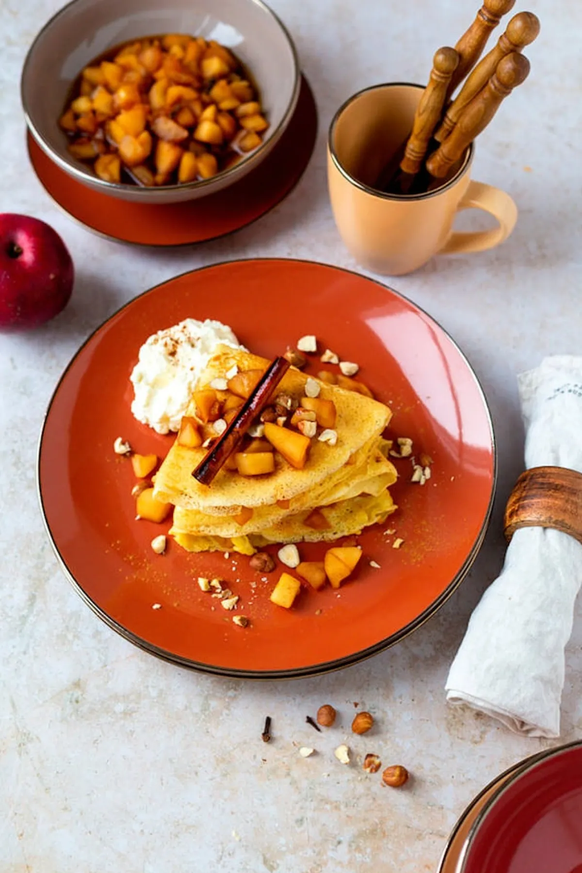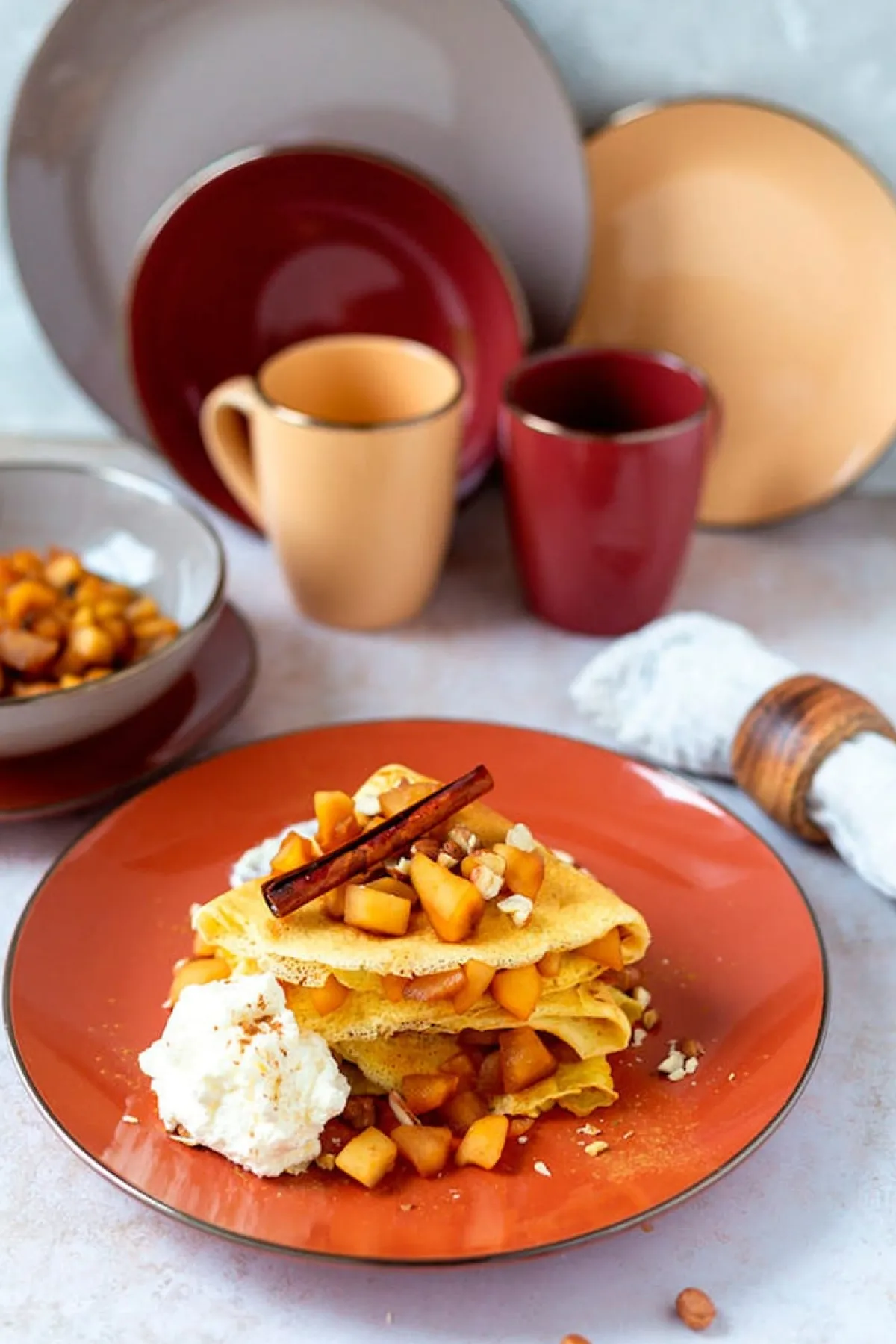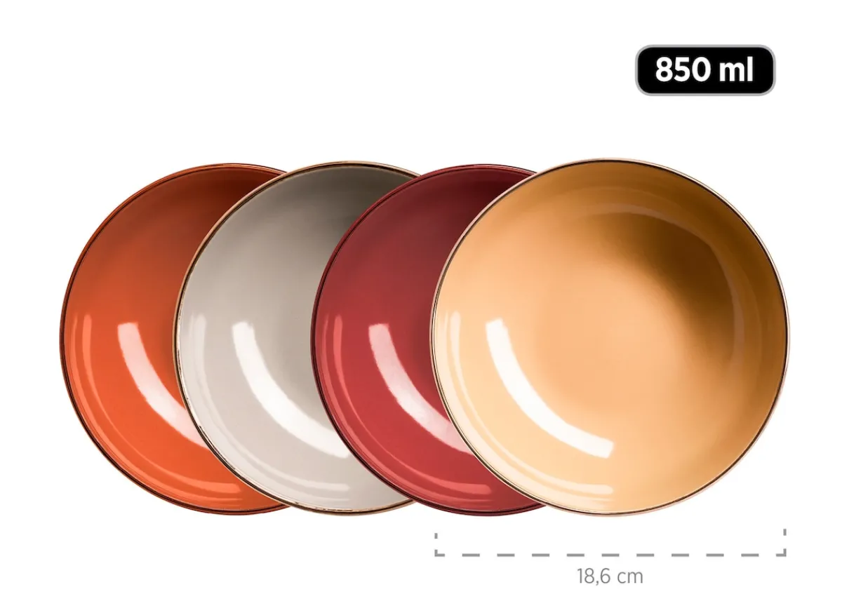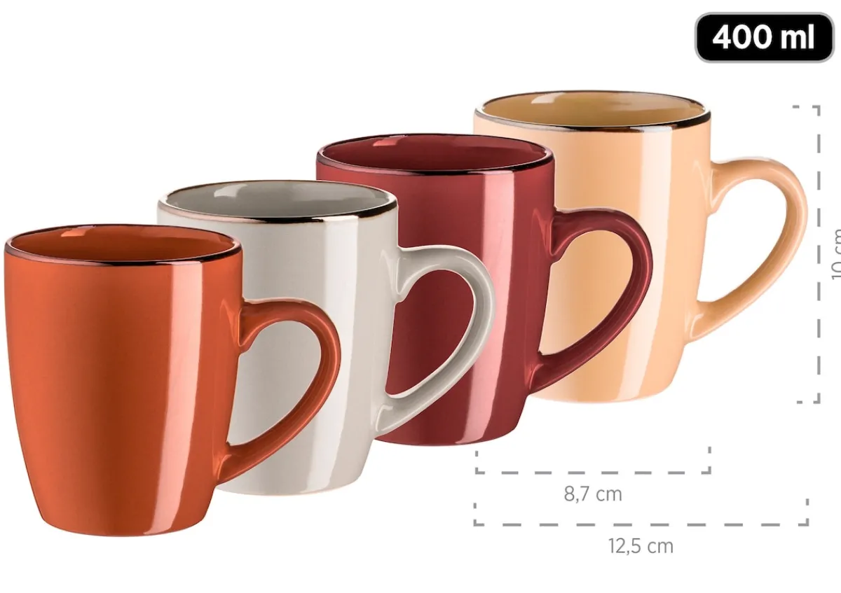 Die moderne Hausfrau Kombiservice, Steinzeug METALLIC RIM Rot, Braun, Orange, Beige