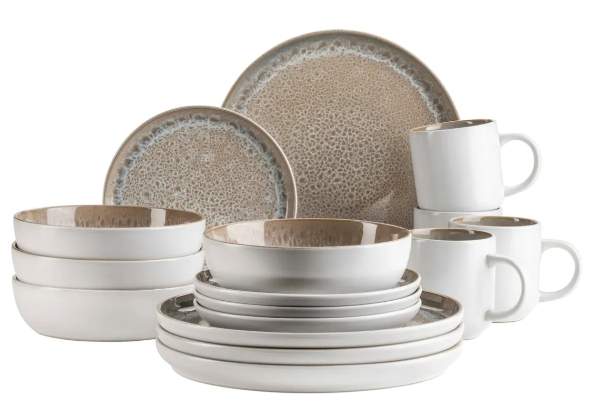 Das MÄSER Kombiservice der Serie Malea in Beige / Blau / Grün mit dunklen Sprenkeln bringt skandinavische Leichtigkeit auf den Tisch. Dank der einzigartigen Reaktivglasur ist jedes Teil ein Unikat mit lebendigem Farbspiel. Die Teller, Schüsseln und Becher sind ideal für alle Mahlzeiten des Tages und bieten durch ihre Form und Farbgebung eine moderne Vintage-Optik. Praktisch im Alltag durch Spülmaschinen- und Mikrowellentauglichkeit – ein echtes Highlight für Ihr Zuhause.