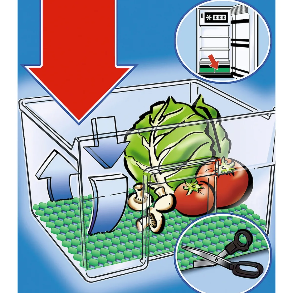Teuer gekauftes Obst und Gemüse schimmelt und fault im Kühlschrank? Das muss nicht sein – dank dieser Kühlschrankmatte! Die grüne Matte lässt die Luft am Boden des Faches besser zirkulieren und hält Obst oder Gemüse so länger frisch. Des Weiteren ist sie individuell zuschneidbar und passt so in jedes Kühlschrank-Modell. Die Abmessungen vor dem Zuschneiden betragen ca. 47 x 30 cm.