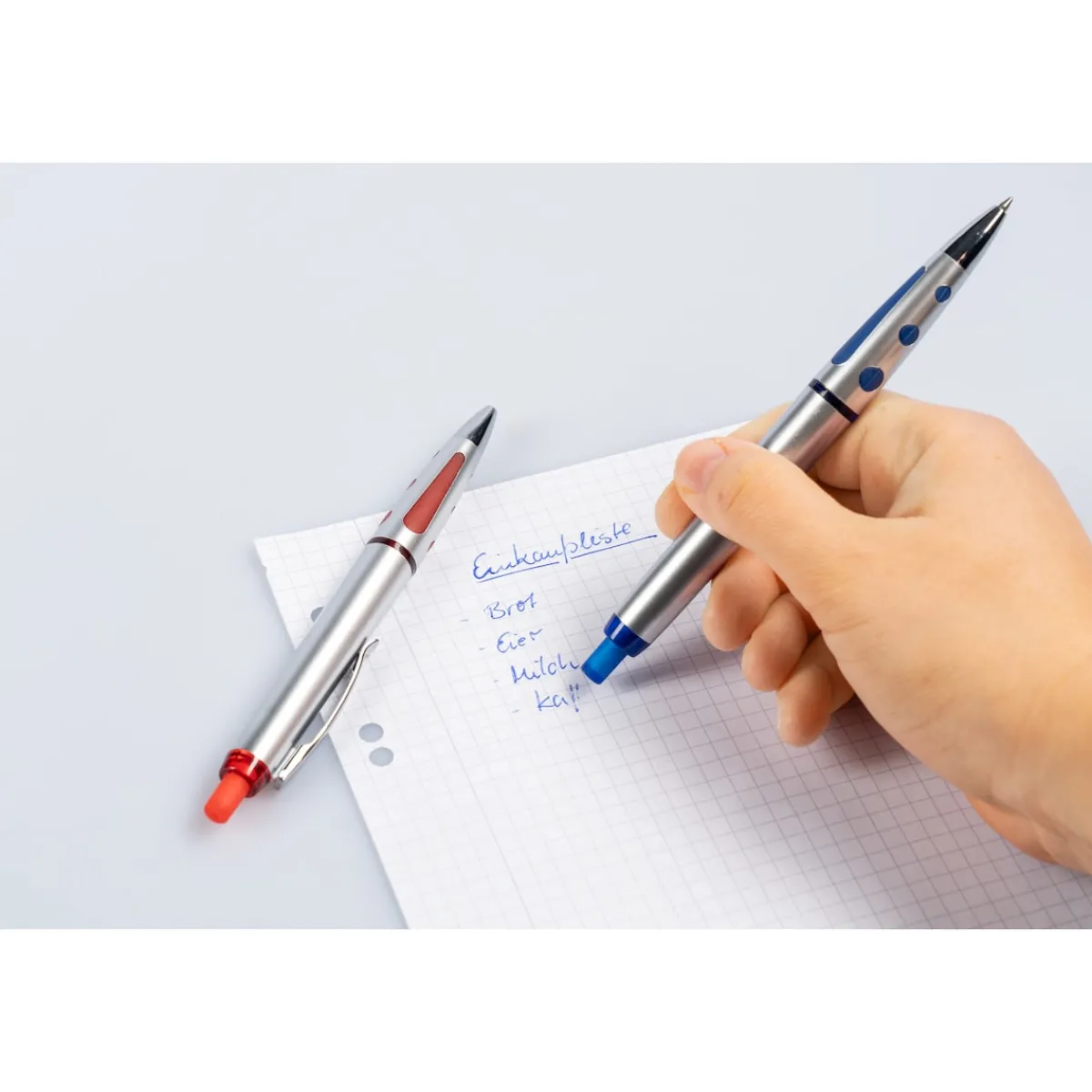 Verbinden Sie das saubere Schriftbild eines Kugelschreibers mit der Korrekturfähigkeit eines Bleistifts. Beide Vorzüge vereint unser Set in je einem einzigen Schreibgerät. Haben Sie sich verschrieben, radieren Sie die Tinte ganz einfach mit dem integrierten Radiergummi wieder weg! Blaue Schriftfarbe.