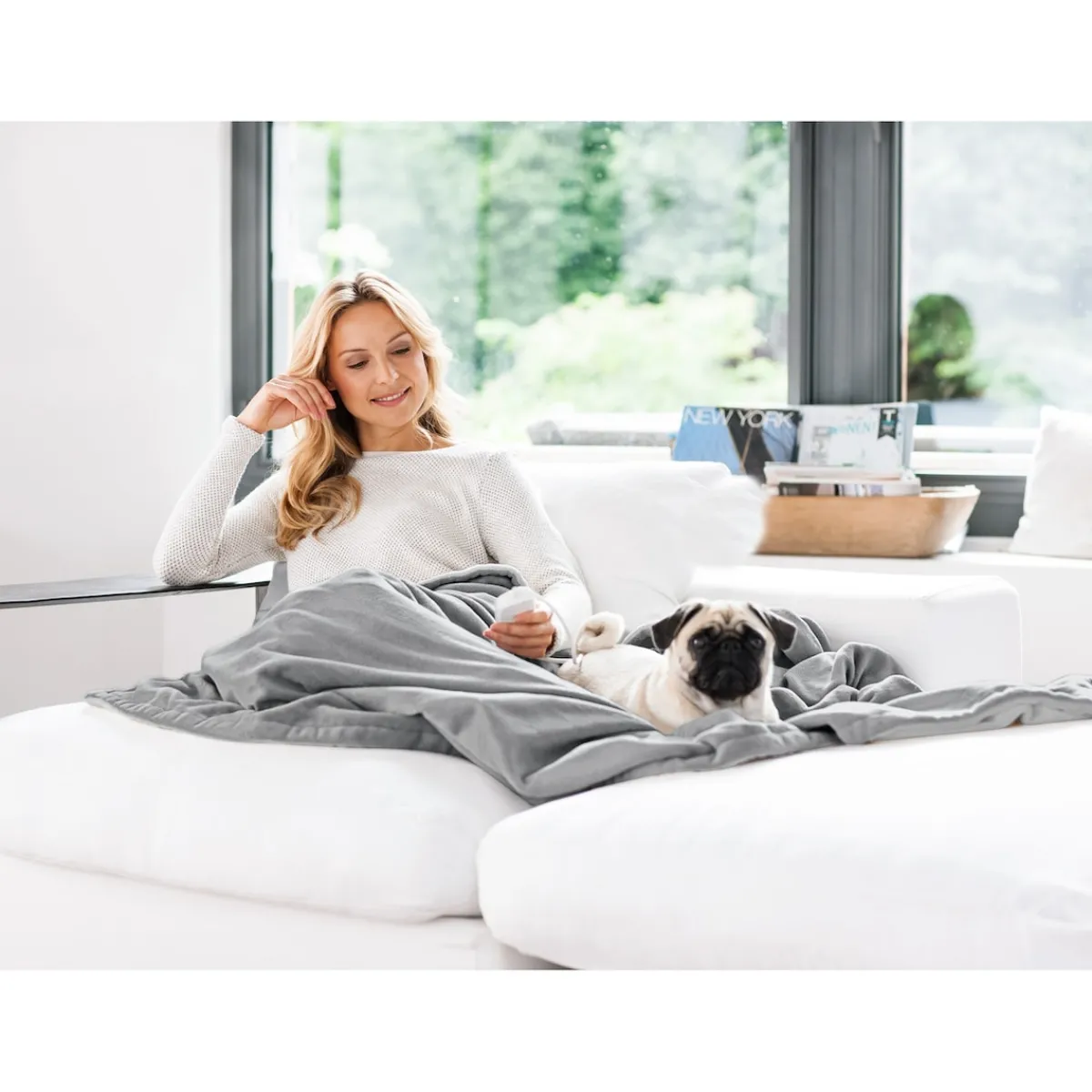 Genießen Sie Rundum-Kuschelwärme ohne Zugluft. Diese Decke wird extra schnell warm, bietet 4 Temperaturstufen und schaltet nach 180 Minuten automatisch ab. Perfekt für gemütliche Abende!