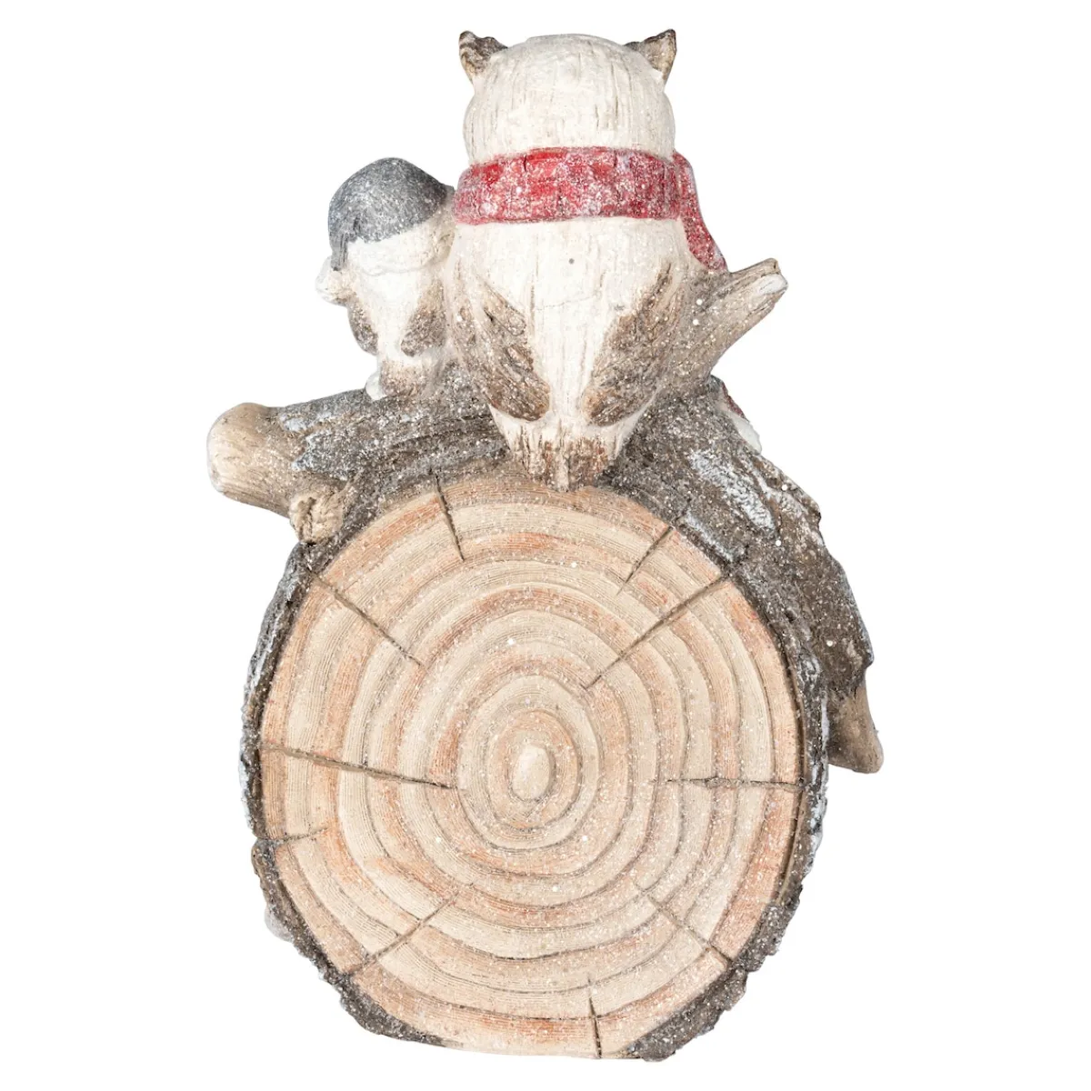 Ein Schaufenster für winterliche Weihnachtsstimmung: Hier thronen 2 Eulen gemütlich auf einer Baumscheibe und empfangen Gäste und Bewohner im Eingangsbereich herzlich. Ab Einbruch der Dämmerung beginnen die Farbwechsel-LEDs stimmungsvoll zu leuchten und setzen das liebliche Winterbild perfekt in Szene.