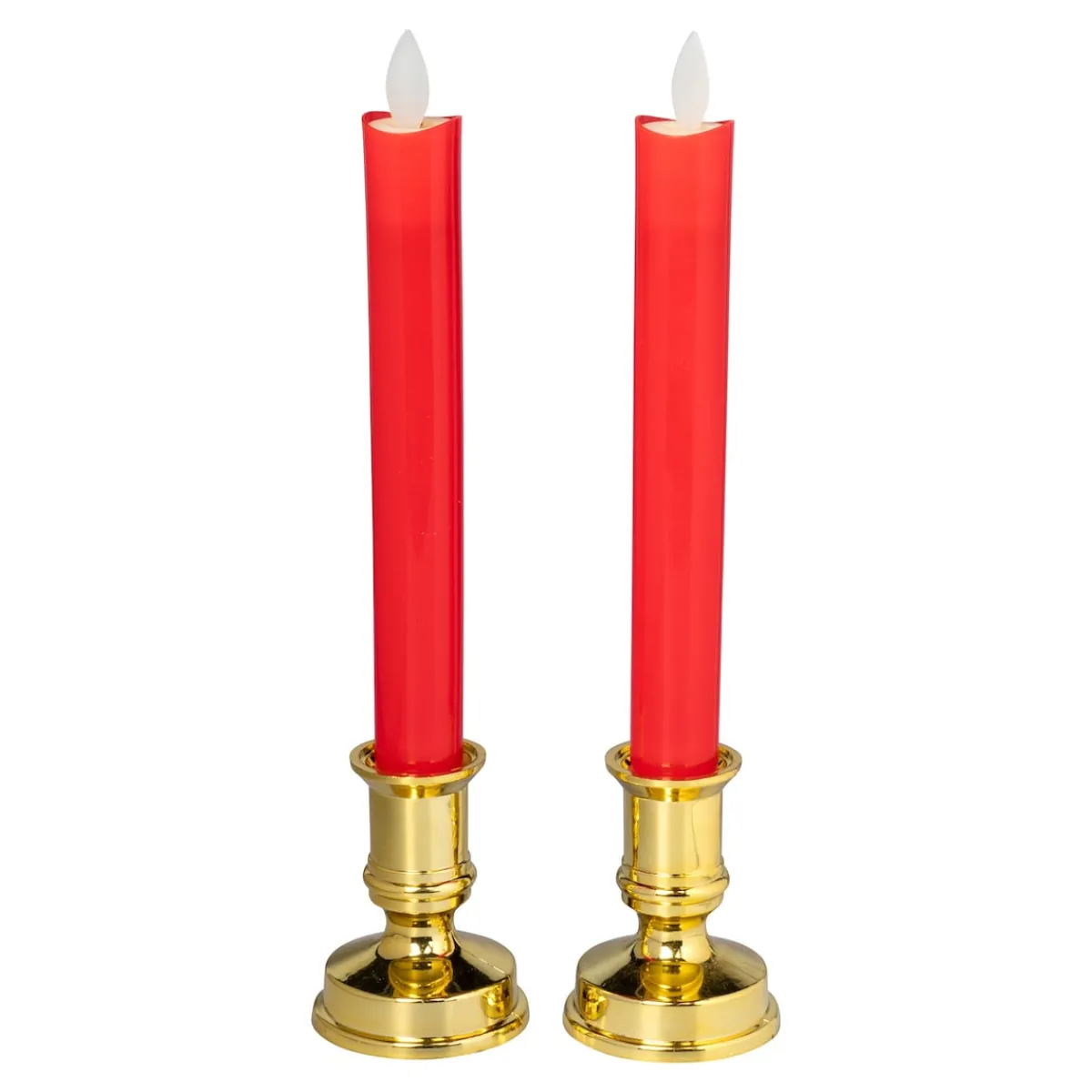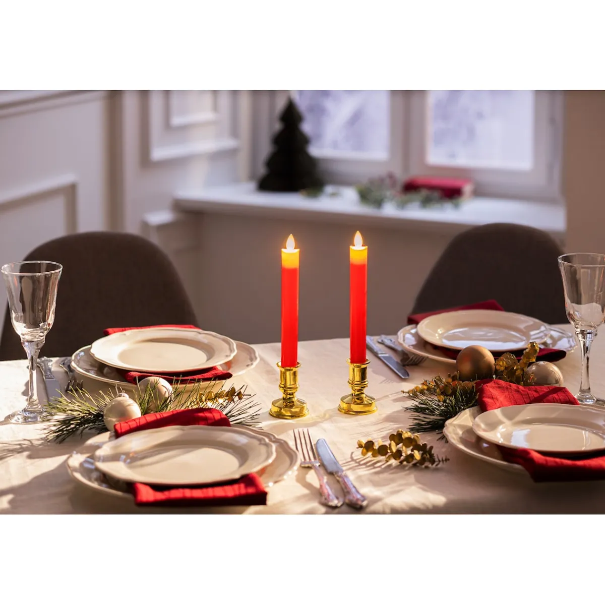 Lassen Sie Ihr Zuhause erstrahlen: Die goldfarbenen Ständer bringen zusammen mit den roten LED-Kerzen weihnachtliche Gemütlichkeit in Ihr Zuhause – ob auf dem festlich gedeckten Tisch oder als funkelnder Hingucker im Wohnzimmer. Genial: Keine Brandgefahr dank LED-Funktion.