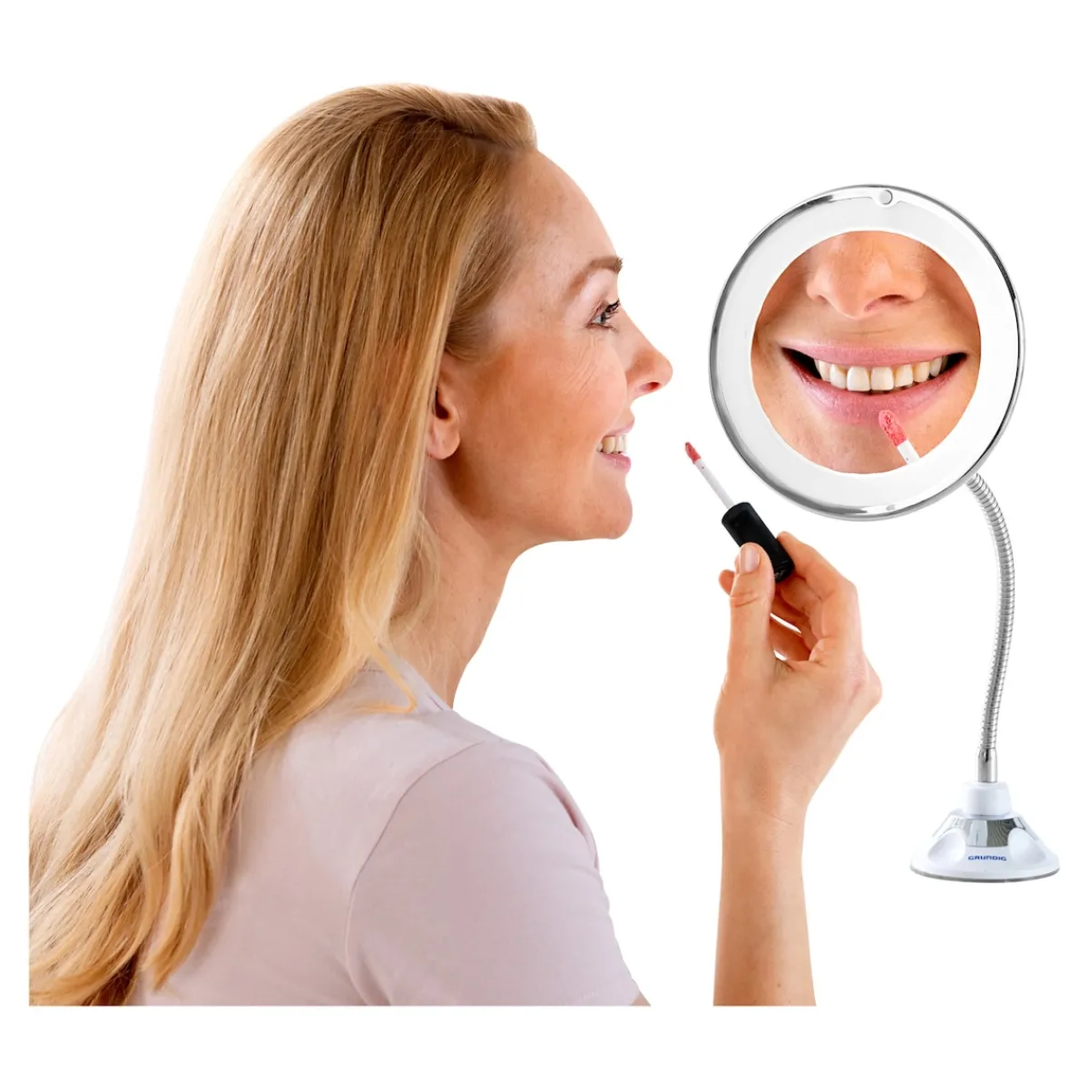 Präzises Schminken dank hervorragender Ausleuchtung und 10-facher Vergrößerung. Mit voller 360-Grad-Rotation in alle Richtungen. Befestigung mit Saugnapf, keine Schrauben erforderlich. 20 LEDs.