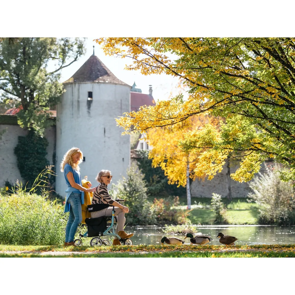 Dieser Rollator bietet Ihnen nicht nur Leichtigkeit und Stabilität, sondern auch Komfort und Benutzerfreundlichkeit. Mit seinen Smartsoft-Reifen ermöglicht er ein angenehmes Gehen auf jedem Untergrund. Der Rückengurt und die ergonomischen Handgriffen lassen sich individuell auf Ihre Körpergröße anpassen. Dank des einfachen Faltmechanismus ist er praktisch in der Handhabung und lässt sich leicht transportieren. Nutzen Sie ihn drinnen und draußen, beim Spazierung durch den Wald und erleben Sie optimale Bewegungsfreiheit. Maximale Traglast für die Tasche beträgt 5kg.
